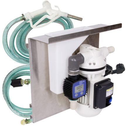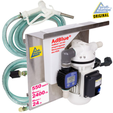 zur Aufhängung an IBC-Containern mit selbstansaugender 230V-Pumpe, Saug- & Druckschlauch, AdBlue-Zapf-Pistole, Zubehör.