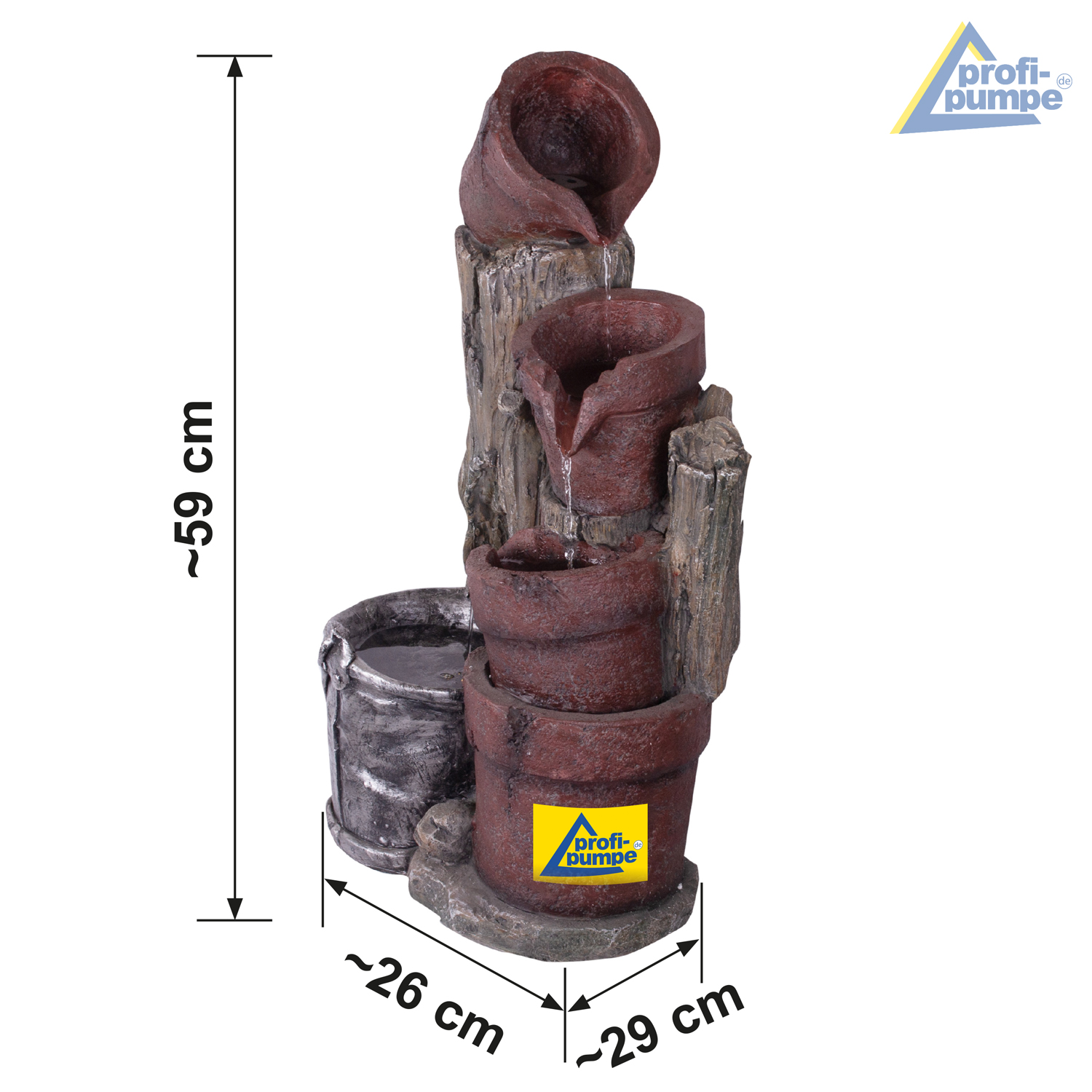 • Steckfertiger, sofort einsatzbereiter Gartenbrunnen