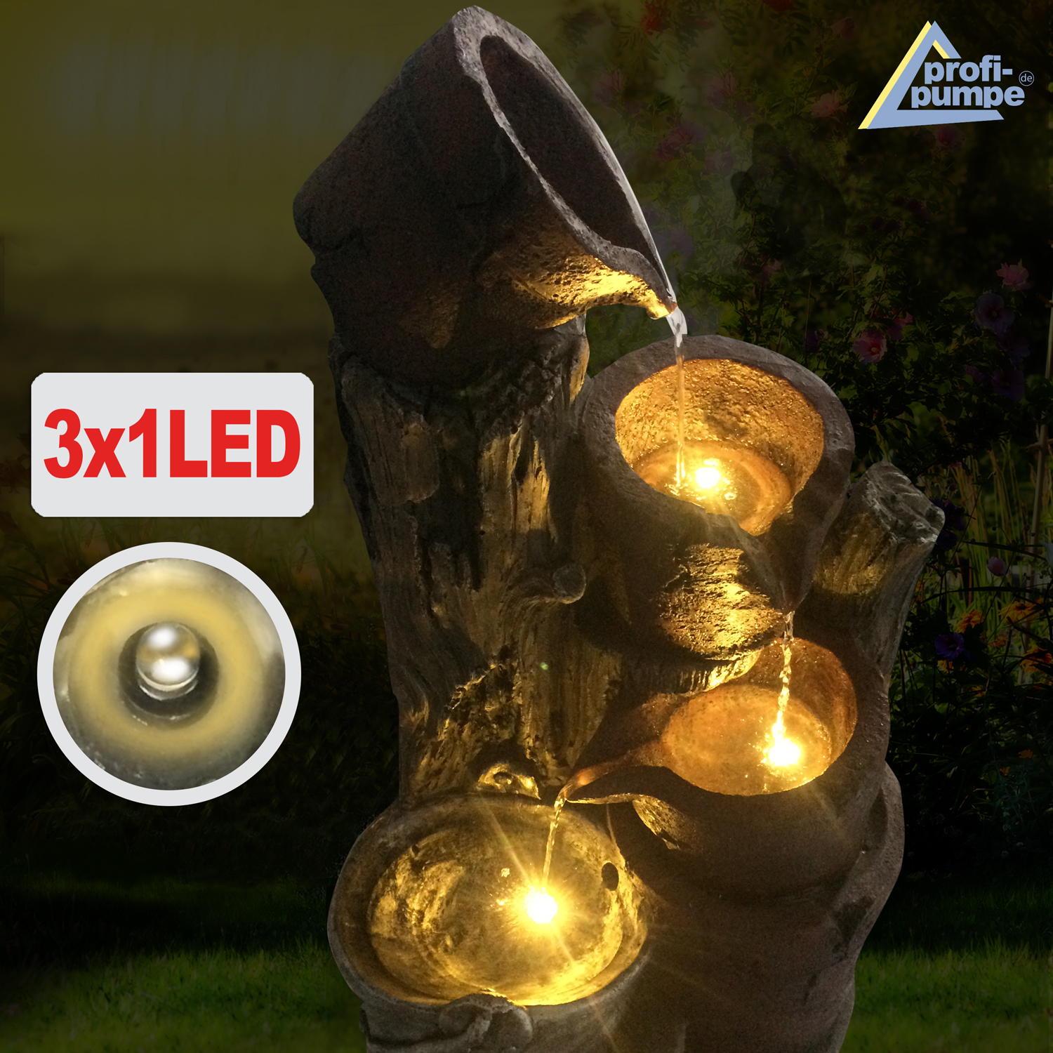 Gartenbrunnen “WALD-QUELLE” mit 3 austauschbaren LED-Lichtern (3*1)