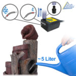 Poznámka: Frost kann zu Schäden am Gartenbrunnen und der Pumpe führen. Bei Frostgefahr muss der Gartenbrunnen und die Pumpe entleert werden, mit klarem Wasser gespült und trocken eingelagert werden. Dann haben Sie sehr lange Freude daran!