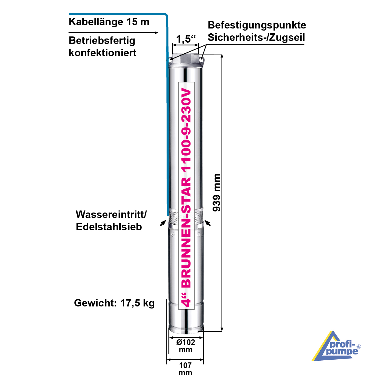4″ Tiefbrunnenpumpe BRUNNEN-STAR 1100-9-230V