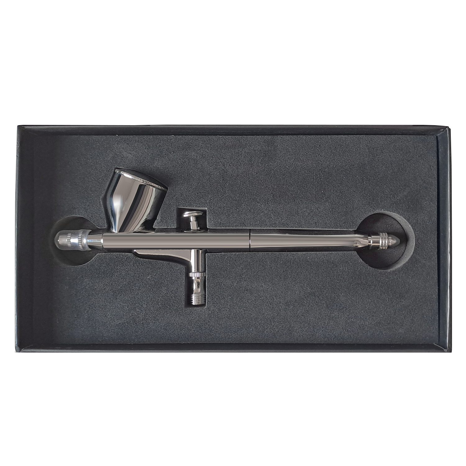 Qualitativ hochwertige Gravity-Sprühpistole mit 0,38mm Düse / 9ml Farbbehälter / Double-Action / Druckkontrolle / Arbeitsdruck: 10-40 PSI / 0,68-2,7 bar / Aufbewahrungsbox. Düsen/Nadeln 0,2/0,3/0,5mm separat als Ersatzteile bestellbar