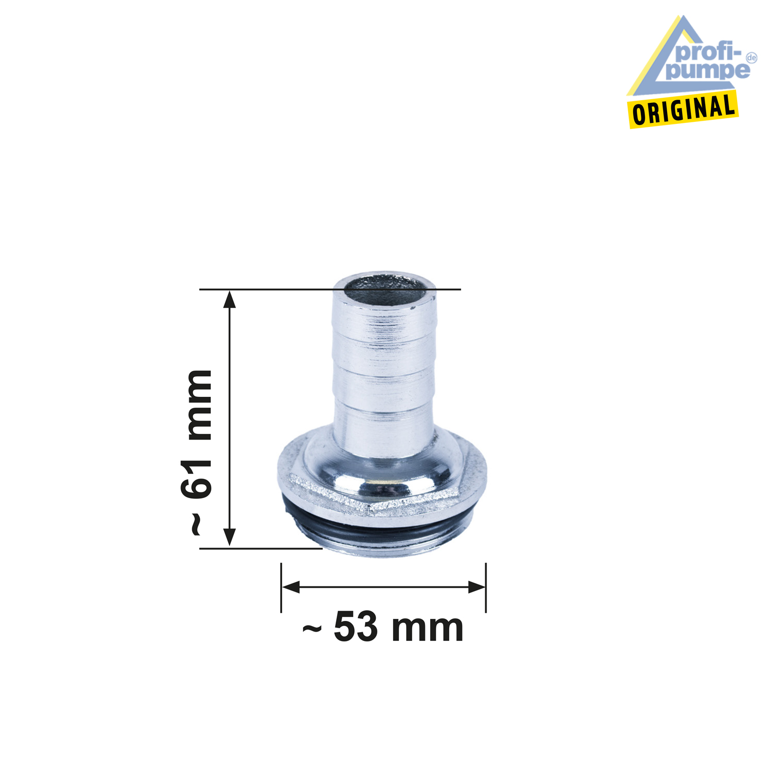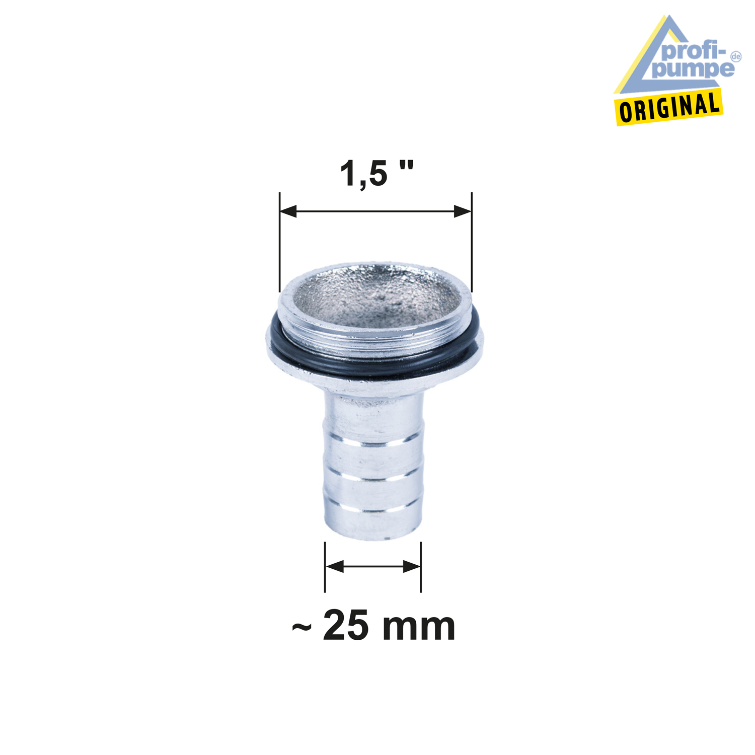 Der Grauguss Adapter mit einem Außengewinde von AG 1 ½“ (1,5 Zoll) ist mit einem Anschluss für Schläuche mit einem Innendurchmesser von 25 mm geeignet. Das Verbindungsstück misst eine Gesamtlänge von 61 mm und einen Gesamtdurchmesser von 53 mm .