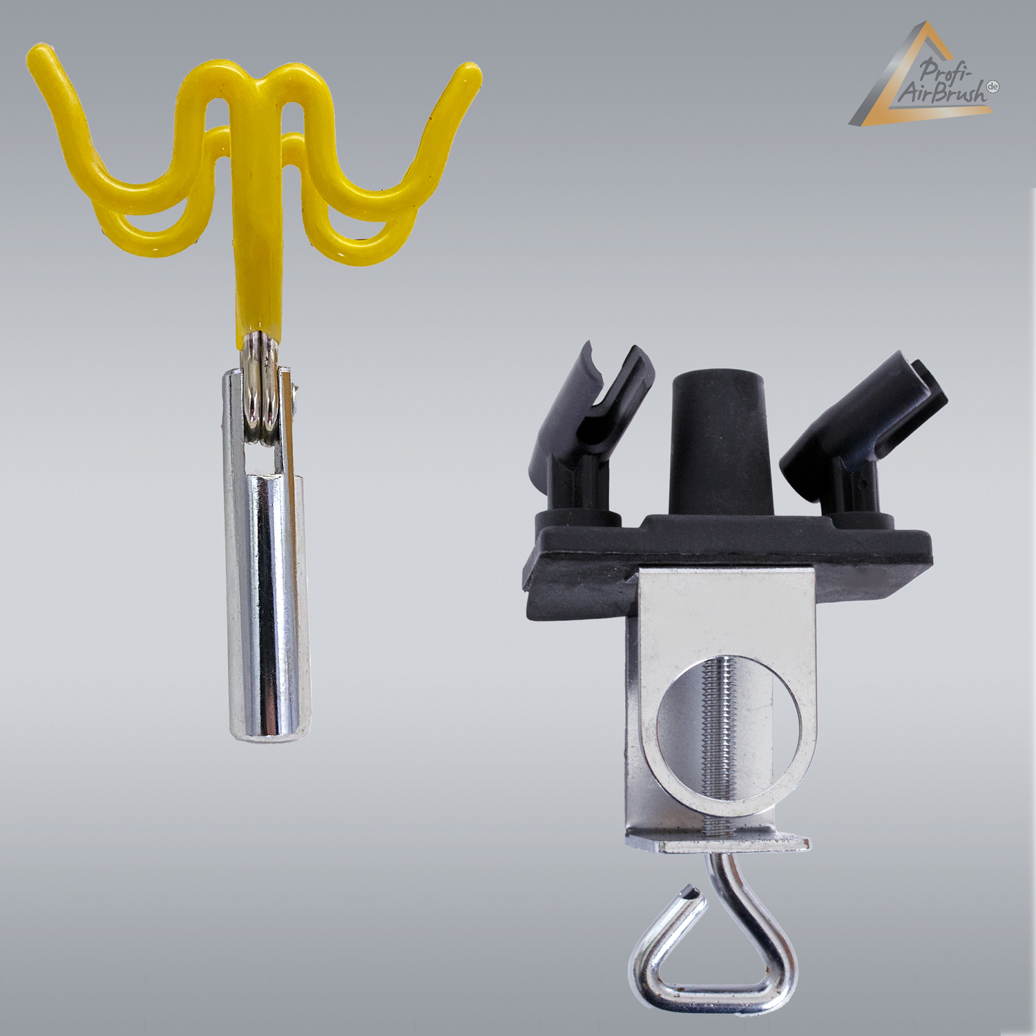Der Airbrush Halter „Profi- AirBrush Holder H3“ dient der sicheren Aufbewahrung der Sprühpistolen, ohne dass Farbe ausläuft oder sie einfach beim Ablegen umfallen. Bis zu 4 Geräte finden auf dem Halter Platz. Der „Profi- AirBrush Holder H3“ wird fest an einer Tischplatte anmontiert. Geeignet auch für die meisten Werkbänke.