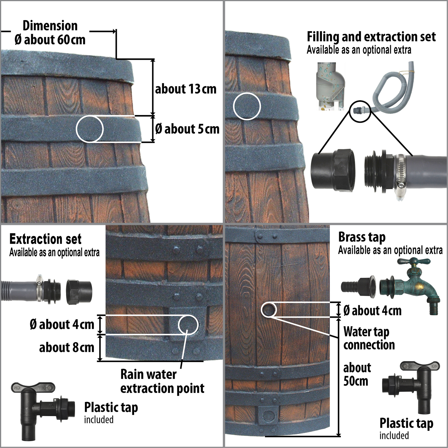 Regentonne Eichenfass 450L zzgl. Befüll – und Entnahmeset – Auswahl
