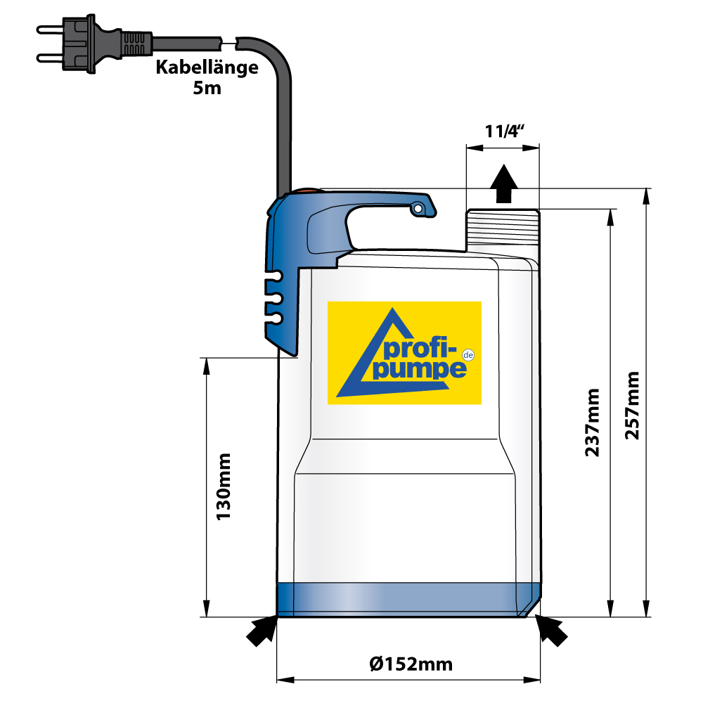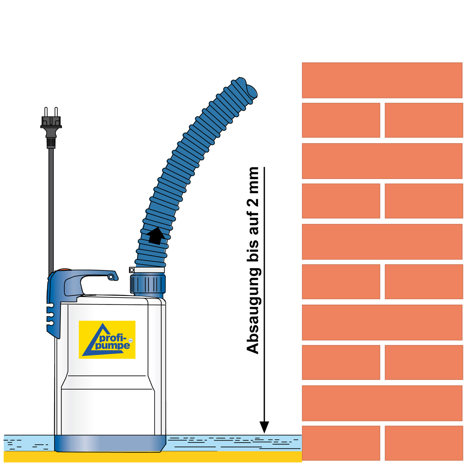 Diese flachsaugende Schmutzwasserpumpe hat keinen Schwimmerschalter. Um ein Trockenlaufen der Pumpe zu verhindern, empfehlen wir einen LEVEL-SENSOR zur präzisen Erfassung niedriger Füllstandhöhen.