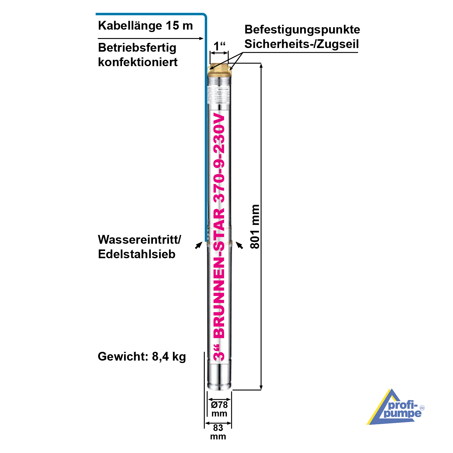 3″ Tiefbrunnenpumpe BRUNNEN-STAR 370-9-230V