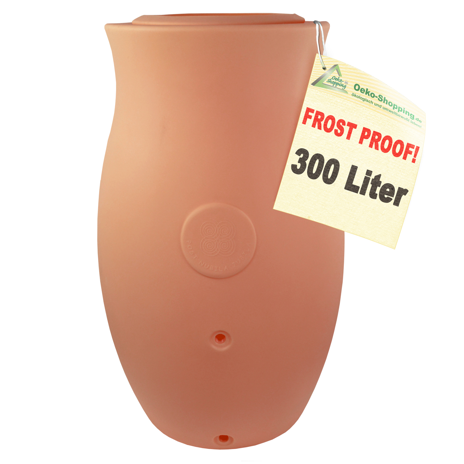 Regenfass mit Pflanzschale – Amphore Maja 300l terrakotta – zzgl. Fallrohrfilter T33 – Auswahl