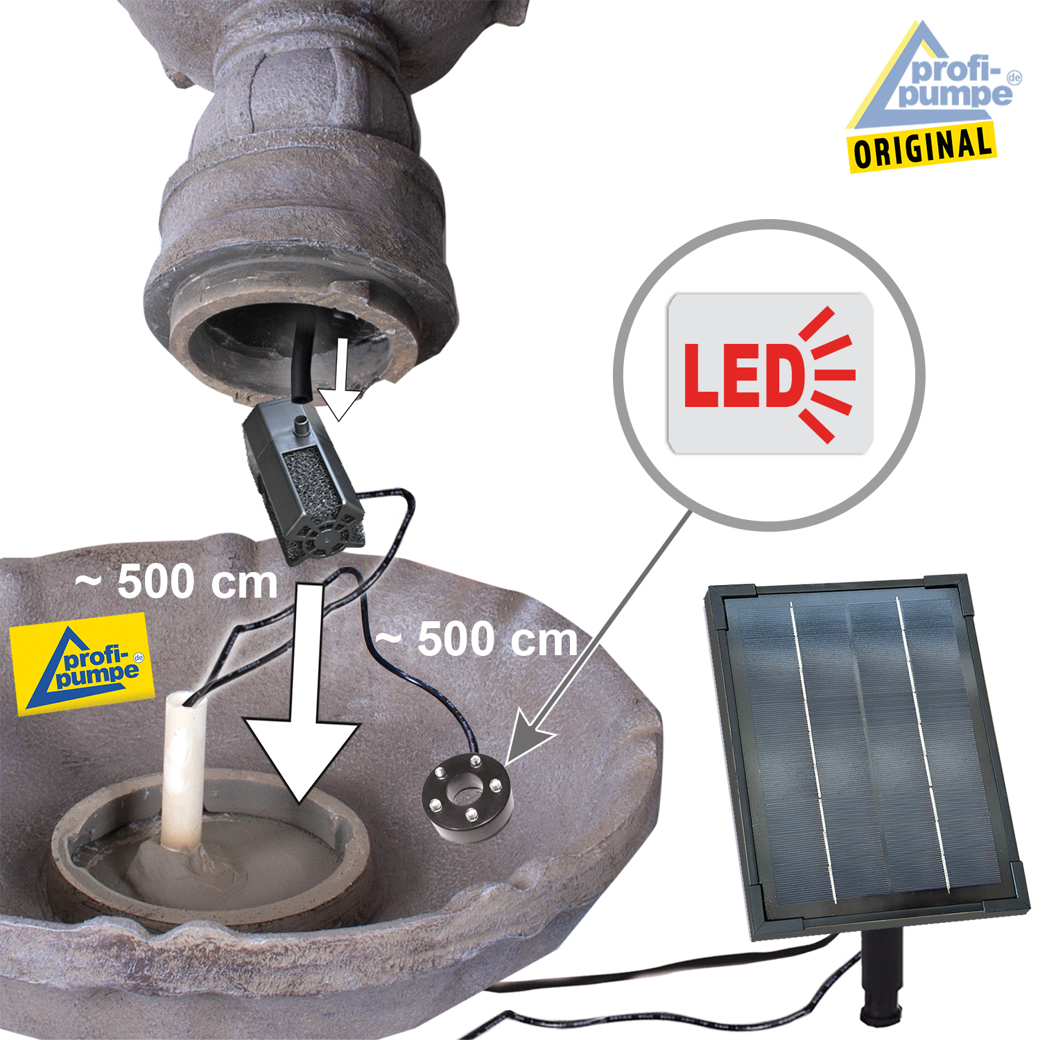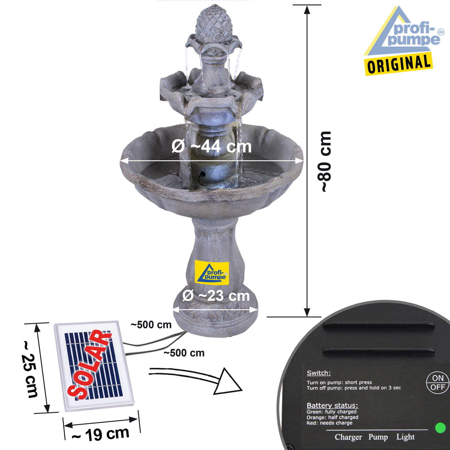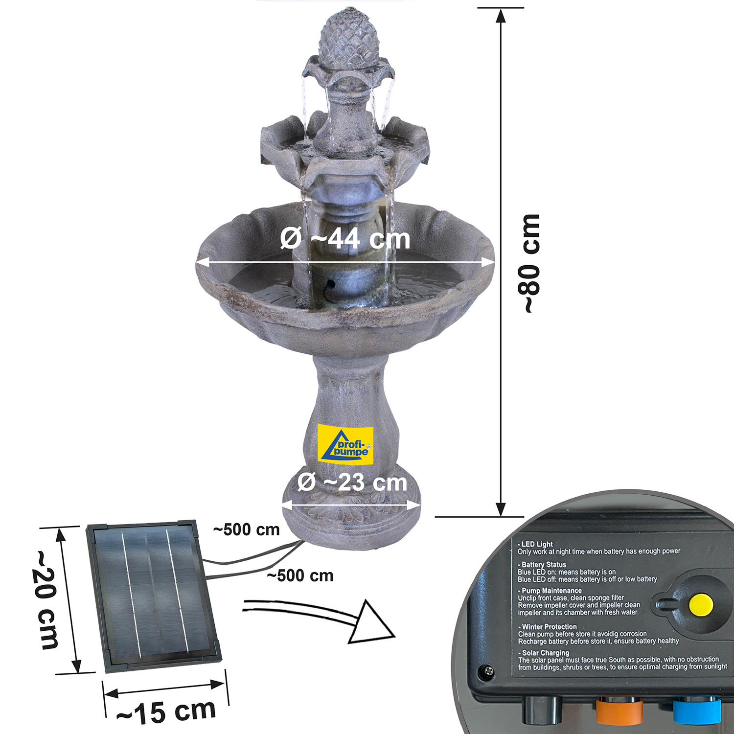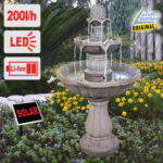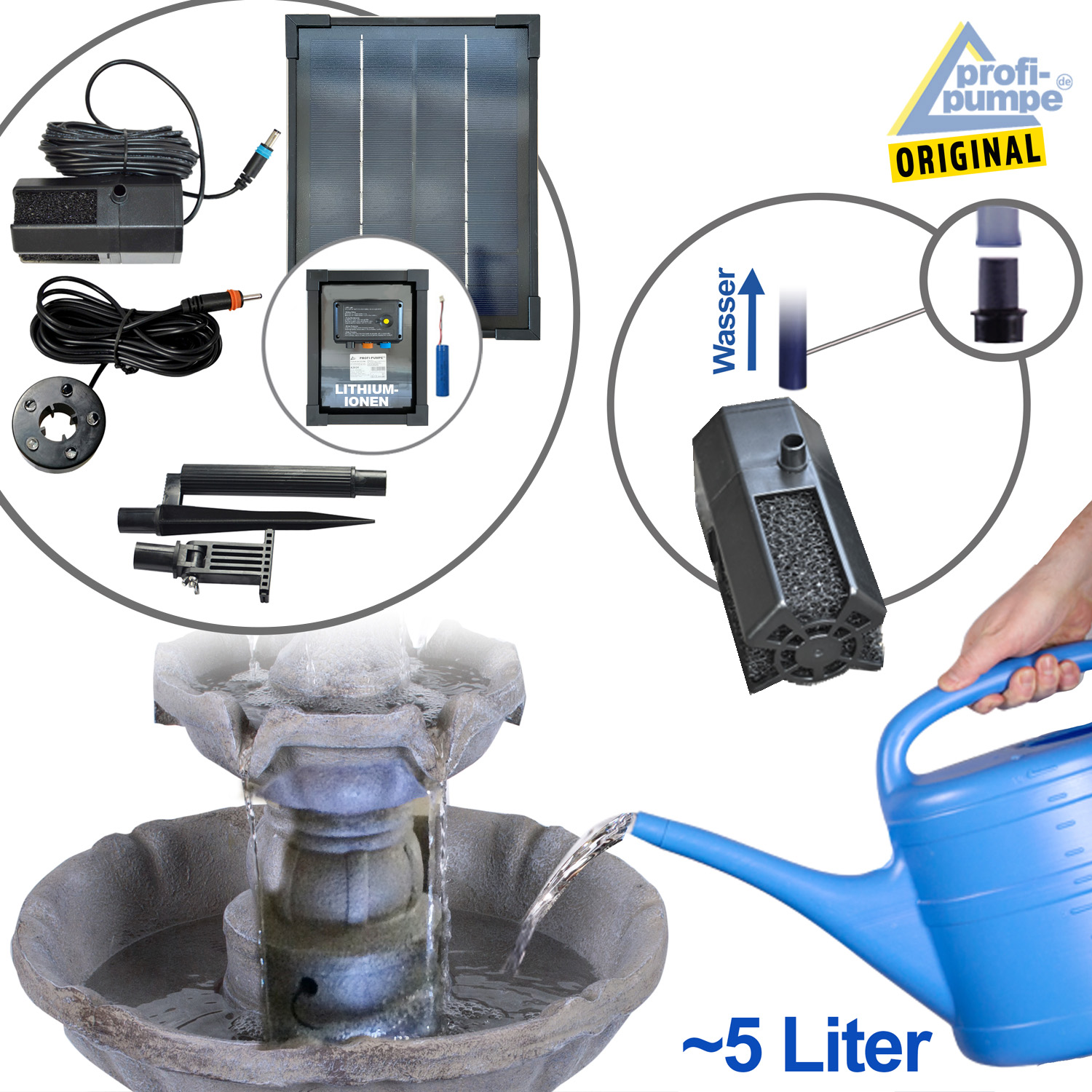 Solarbetriebener Garten-Brunnen mit Li-Ion Akku und LED