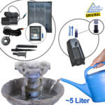 Note: Frost kann zu Schäden am Gartenbrunnen und der Pumpe führen. Bei Frostgefahr muss der Gartenbrunnen und die Pumpe entleert werden, mit klarem Wasser gespült und trocken eingelagert werden. Dann haben Sie sehr lange Freude daran!