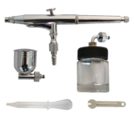 Die Airbrush-Pistole “Gravity Double-Action-Gun 134 D 0,3” ist ein Zweistoff-Zerstäuber, der nach dem Prinzip einer Strahlpumpe arbeitet, wobei Druckluft als Treibmittel verwendet wird.