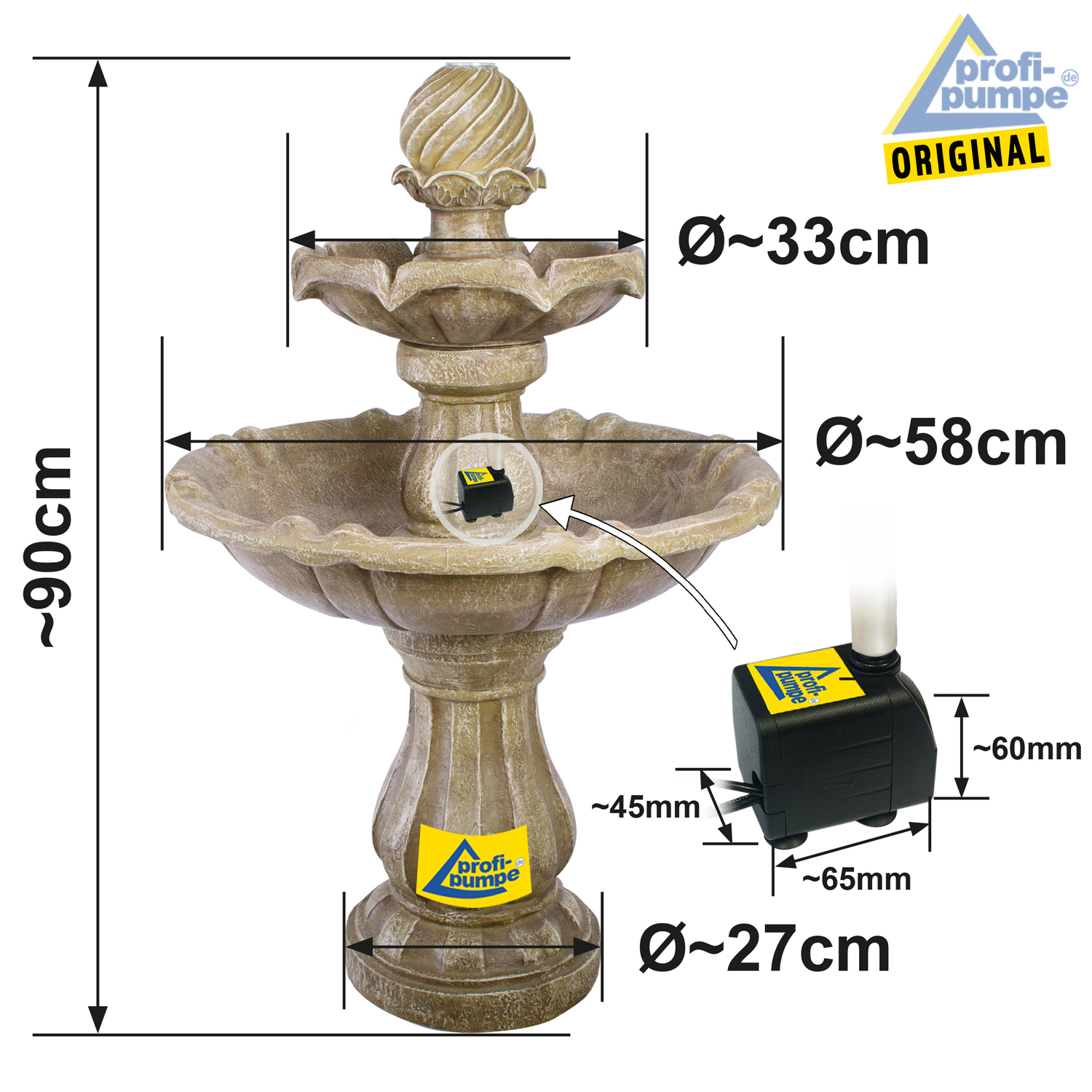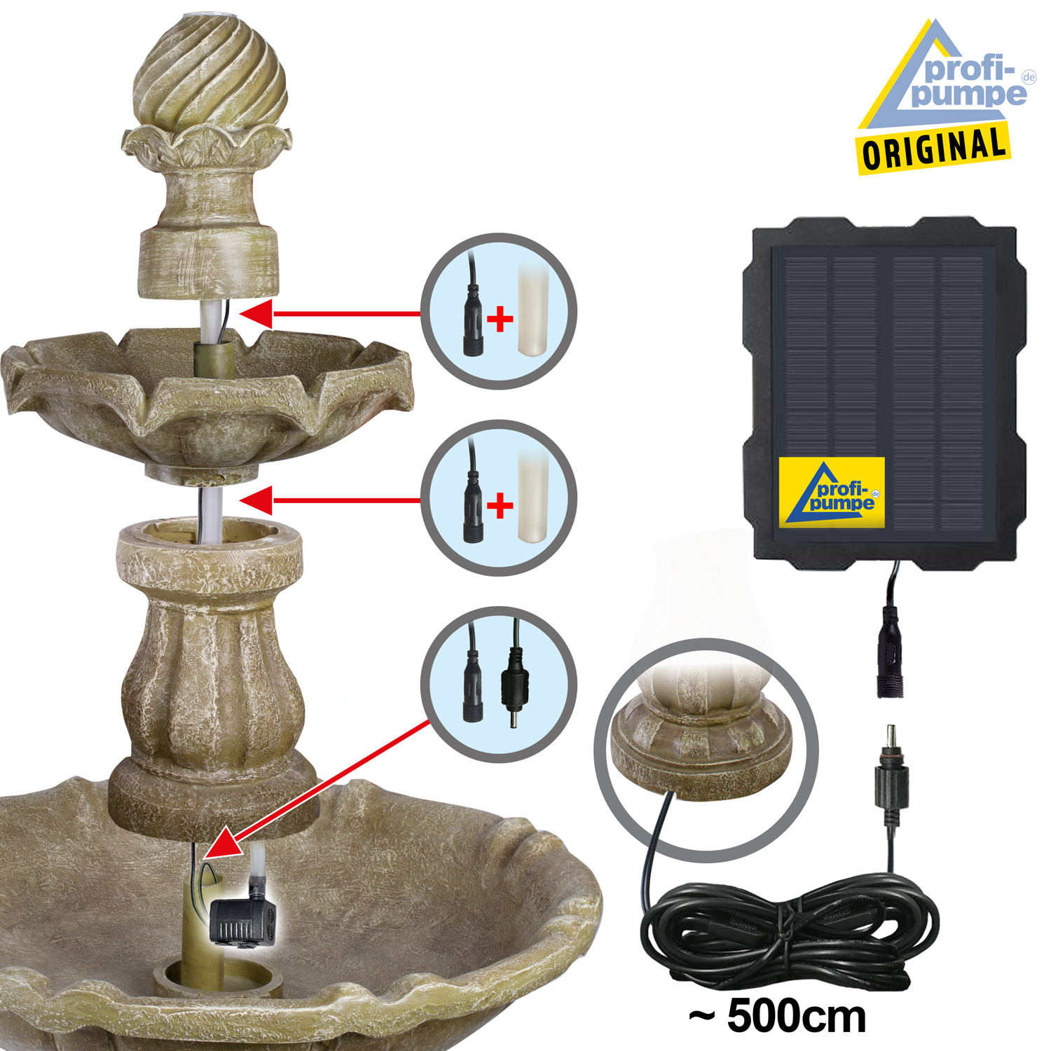 Solar – Gartenbrunnen & Wasserspiel “KLASSIK-GARTEN-3” mit LED-Licht und Li-Ion-Akku