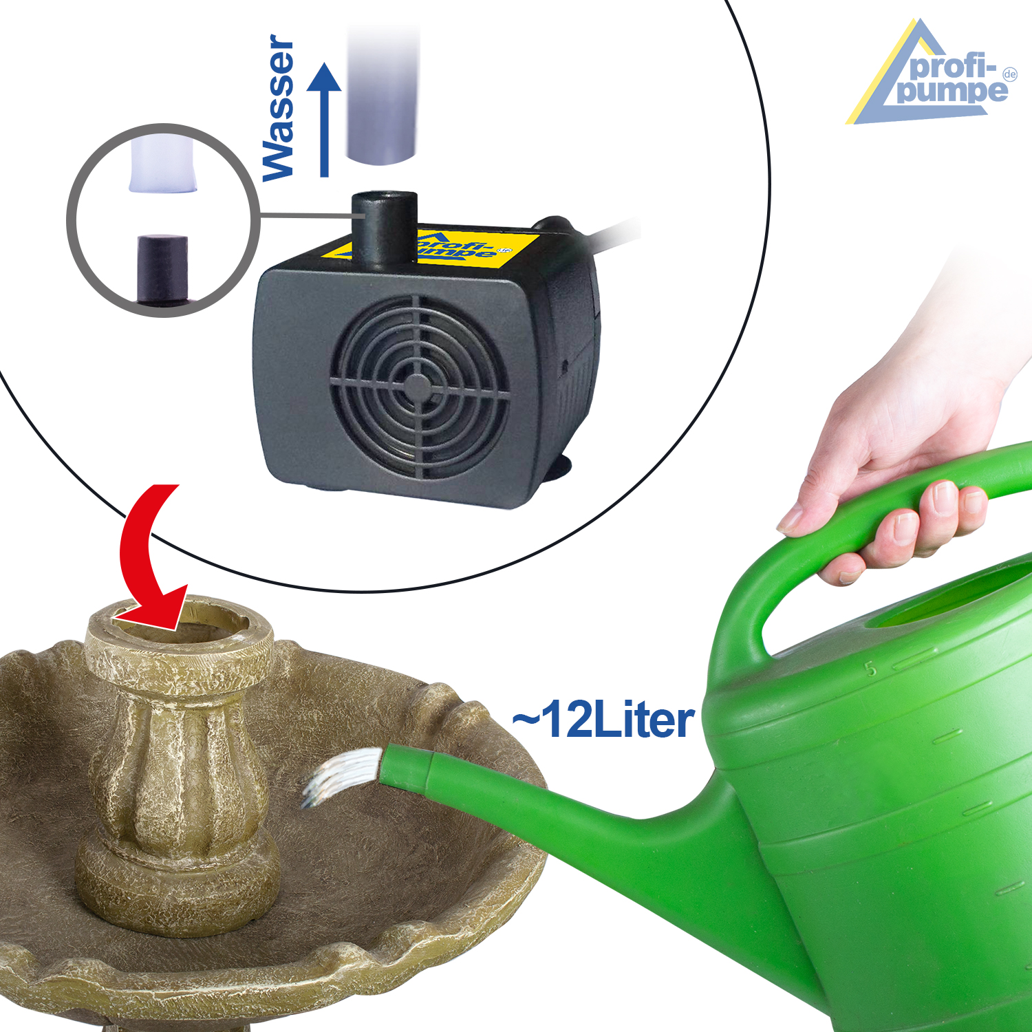 Nota: Frost kann zu Schäden am Gartenbrunnen und der Pumpe führen. Bei Frostgefahr muss der Gartenbrunnen und die Pumpe entleert werden, mit klarem Wasser gespült und trocken eingelagert werden. Dann haben Sie sehr lange Freude daran!