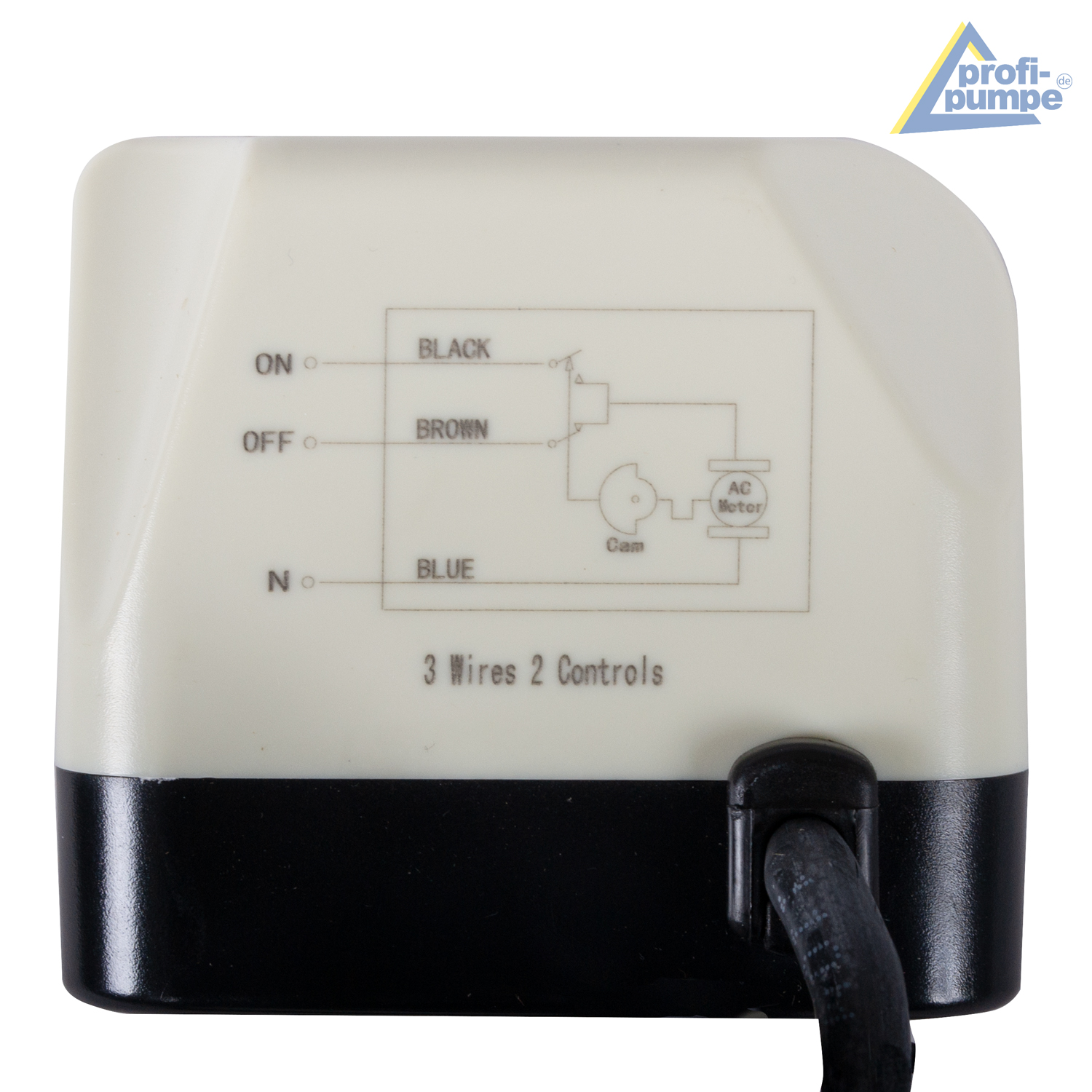 Das Anschlußschema entnehmen Sie bitte dem Foto. Das 2-Wegeventil ist als Wechselschalter vorgesehen. Der “Blaue” Leiter dient als “Nulleiter”. Bei Anlegen der Spannung an “Schwarzen” Leiter wird die Ventil-Stellung “A-AB” erzielt. Bei Anlegen der Spannung an “Braunen” Leiter wird die Ventil-Stellung “B-AB” erreicht. Das Ventil hat keine automatische Rückstellung.Bei Stromausfall kann das Ventil, nach Abnahme des Steuerteils, mit einem Maulschlüssel verstellt werden.