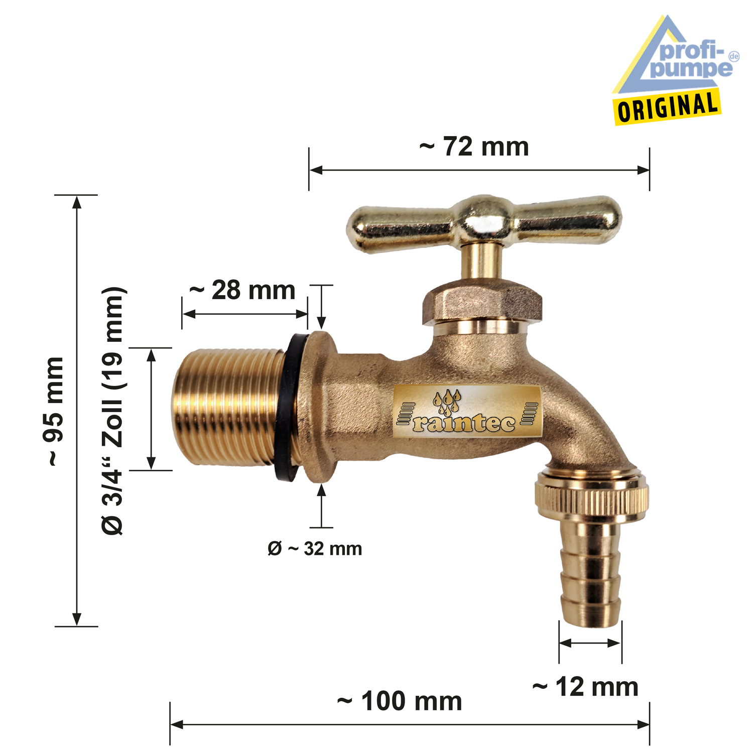 Auslaufhahn (Messing), Gewindeanschluss 3/4 ” Zoll AG Schlauchanschluss 12mm
