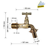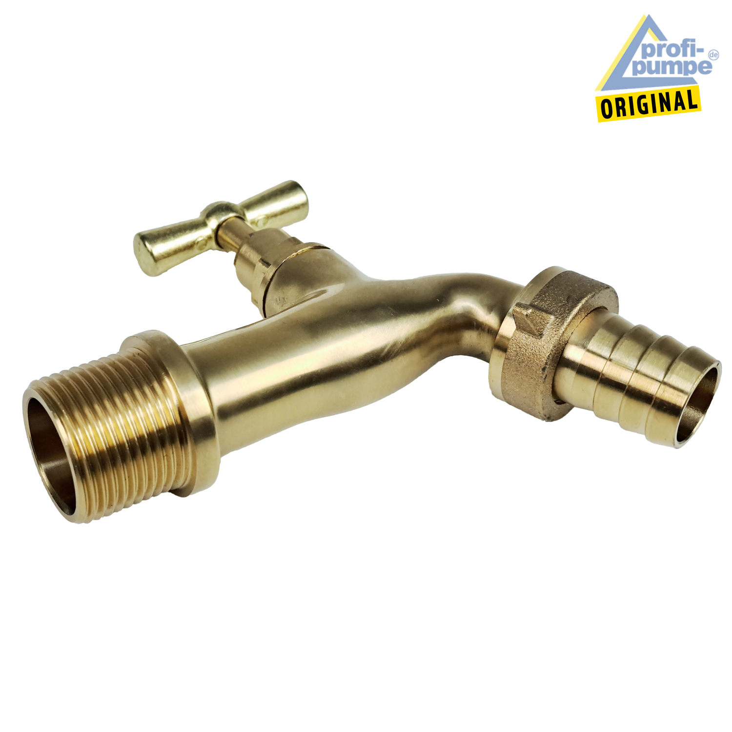 Auslaufhahn (Messing poliert), Gewindeanschluss 3/4 ” Zoll AG Schlauchanschluss 17mm