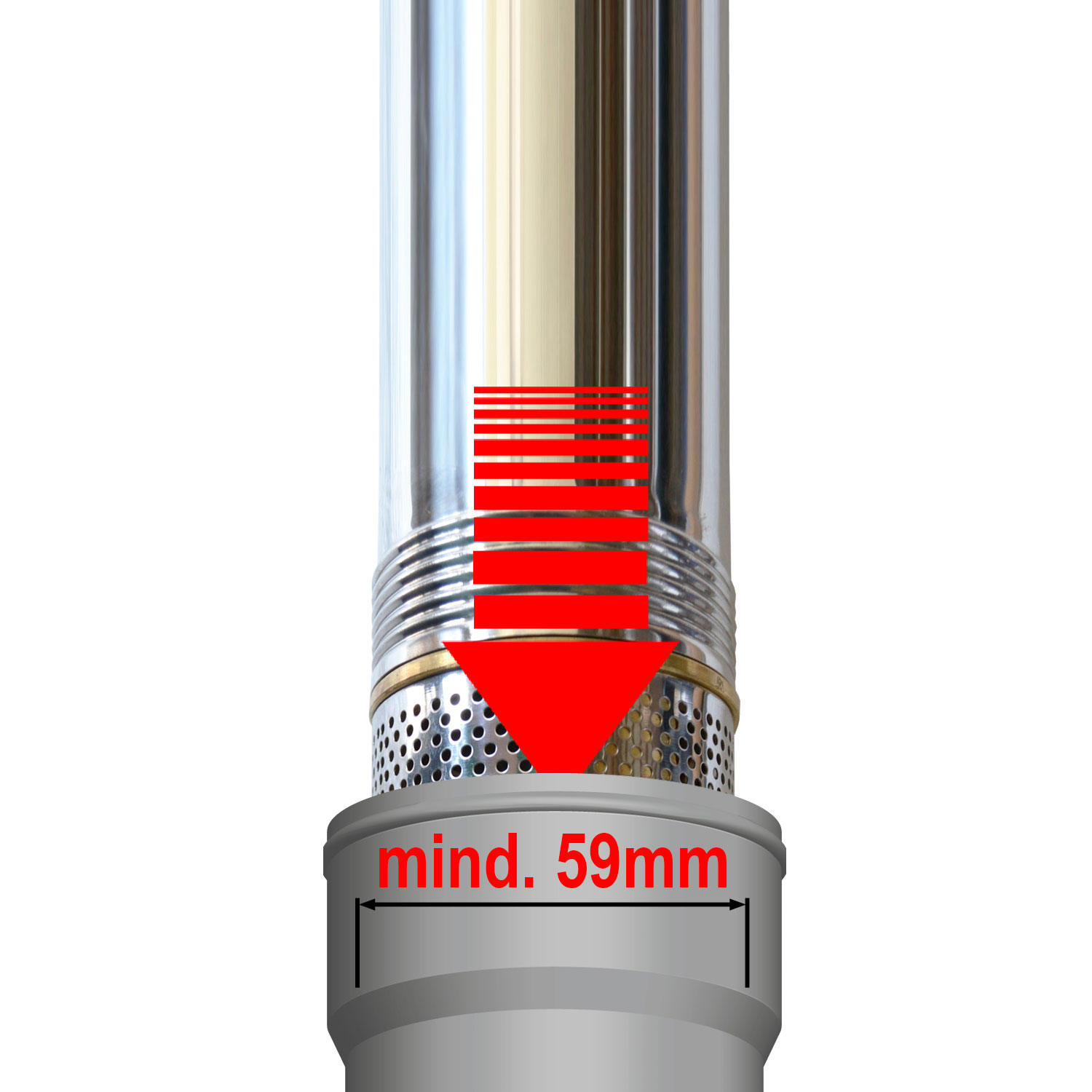 Mit 2 Zoll wird die Brunnenpumpe zur Problemlรถserin: Die schlanke Tiefbrunnenpumpe hat einen Durchmesser von nur ca. 51mm. Die Brunnenpumpe kann optimal in engen Schรคchten mit einem Mindest-Durchmesser von 60mm eingesetzt werden.