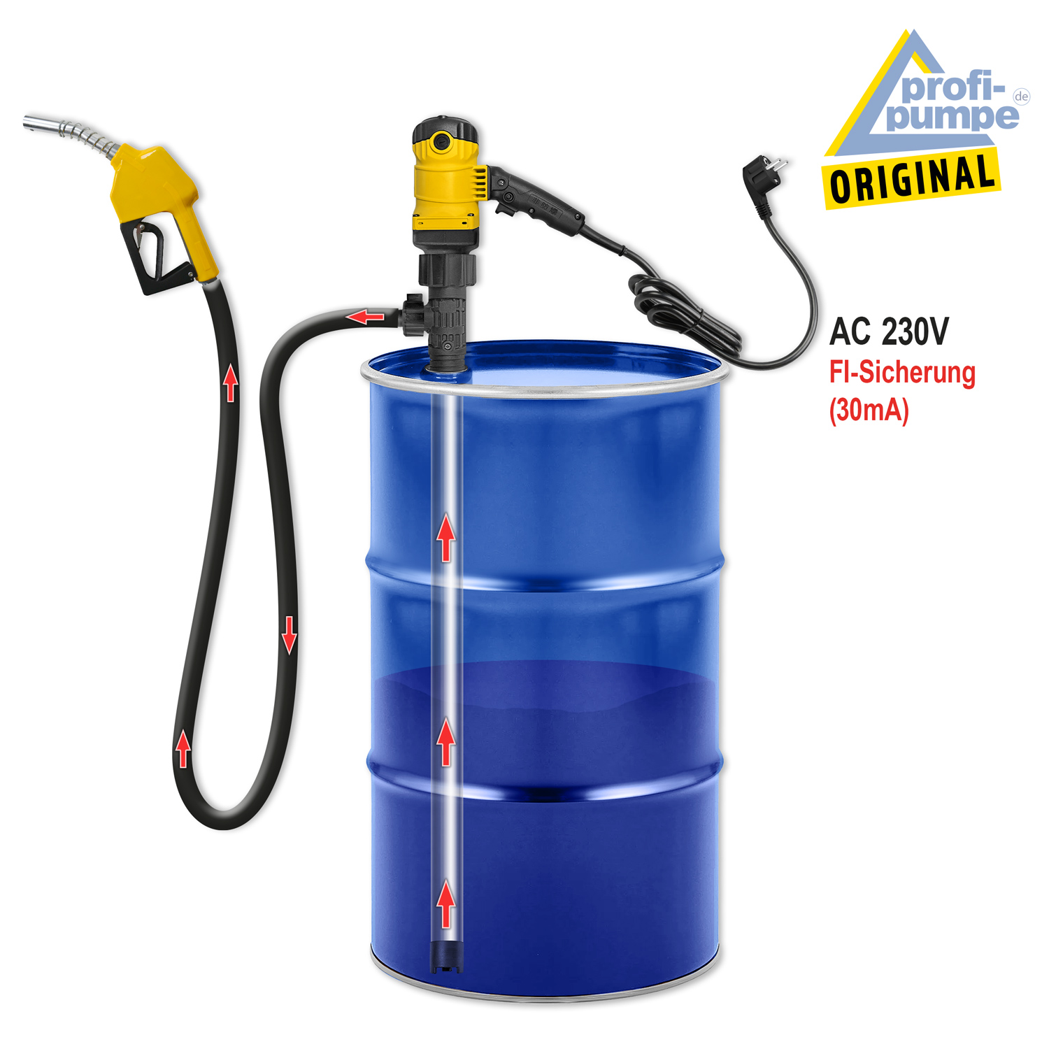 Unsere Diesel-Fass-Pumpe 230 Volt ist die ideale Umfรผllpumpe fรผr Diesel und Heizรถl.