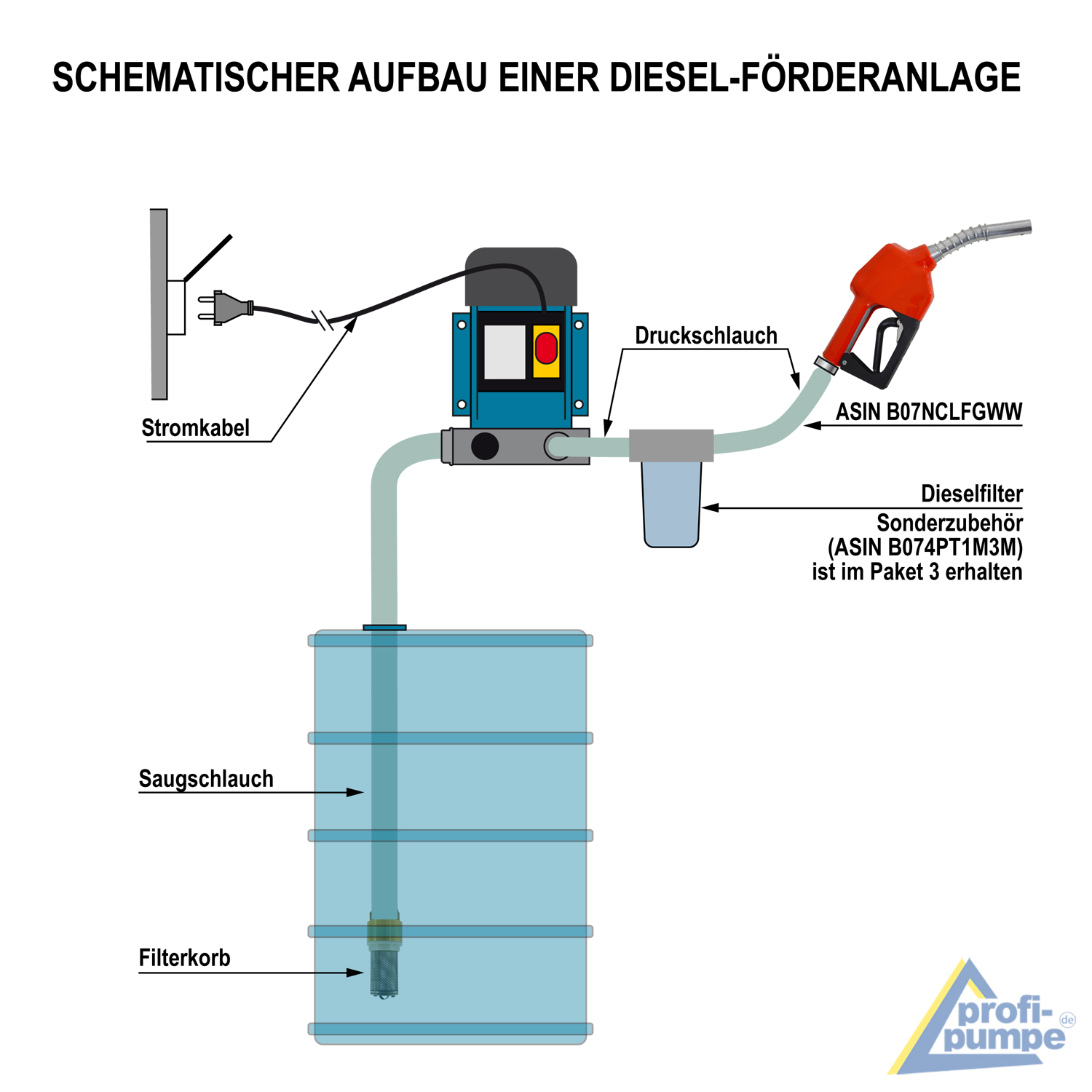 - Komplett-Set 230V zum Befüllen, Umpumpen, Umfüllen, Entleeren von Diesel- und Heizöl-Tanks