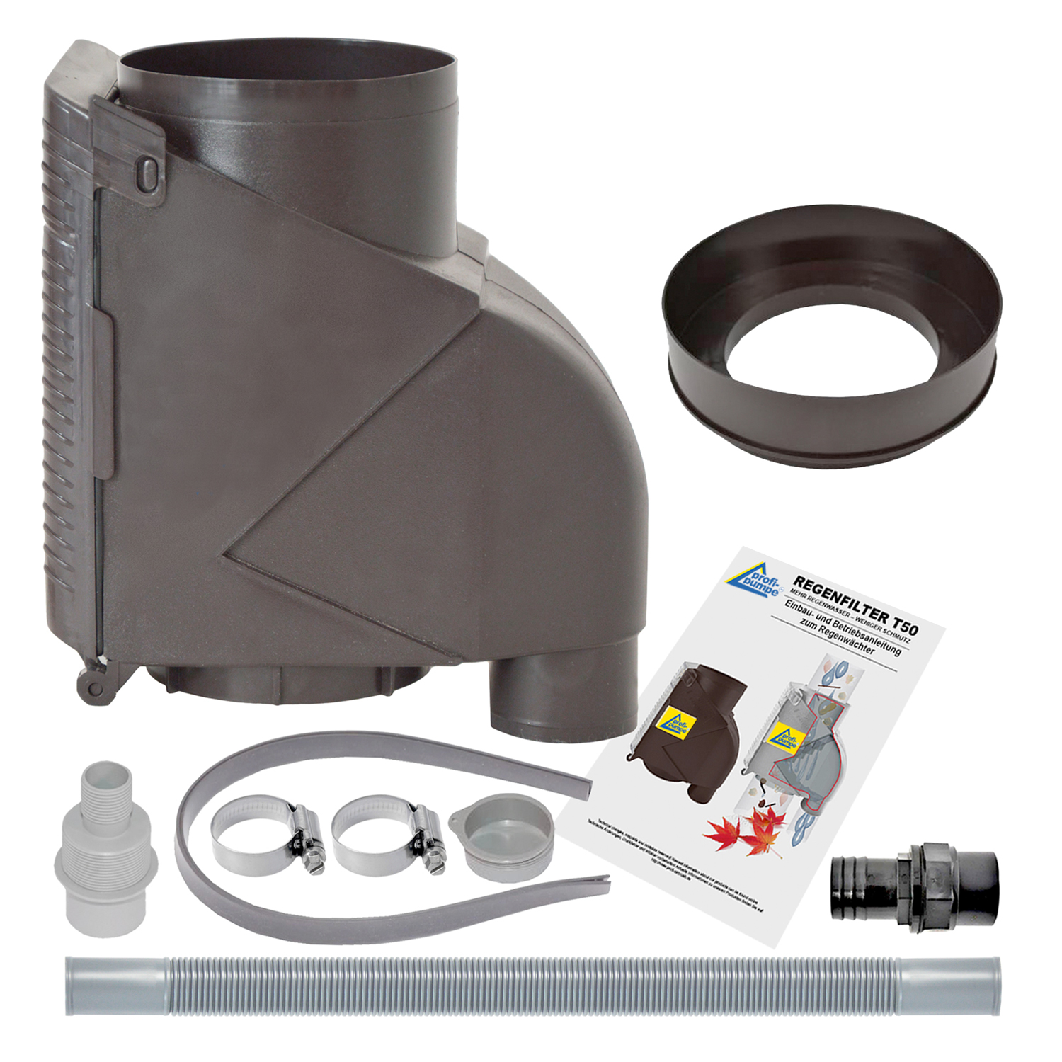Fallrohrfilter T50 braun inkl. DN50 Anschluss-Set grau