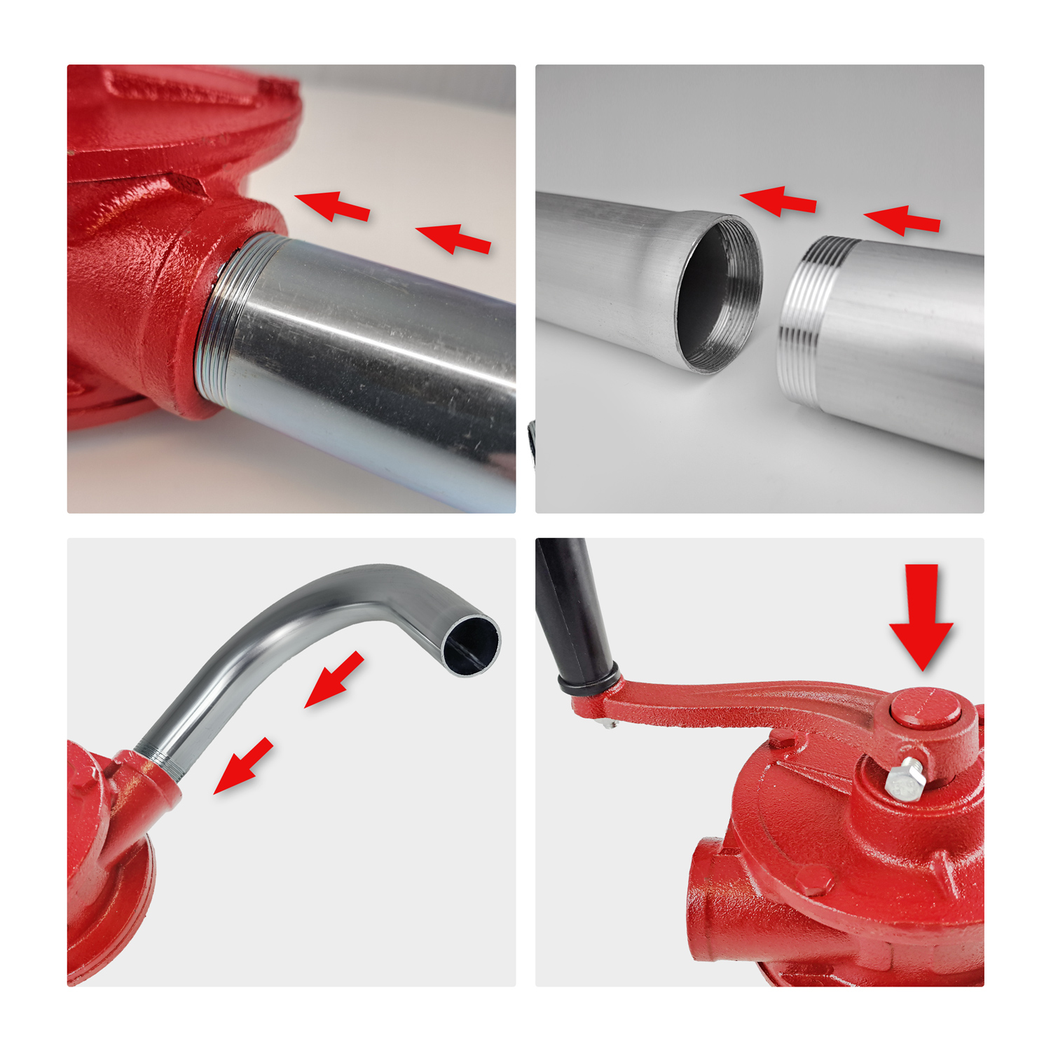 Sie hat drei zusammensteckbare Ansaugrohre und ein gebogenes Abflussrohr. Die klassische zuverlรคssige Pumpe mit Handkurbel, die sich ohne Vorkenntnisse einfach zusammenbauen lรครt. Auรerdem besitzt sie ein widerstandsfรคhiges Pumpengehรคuse.