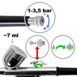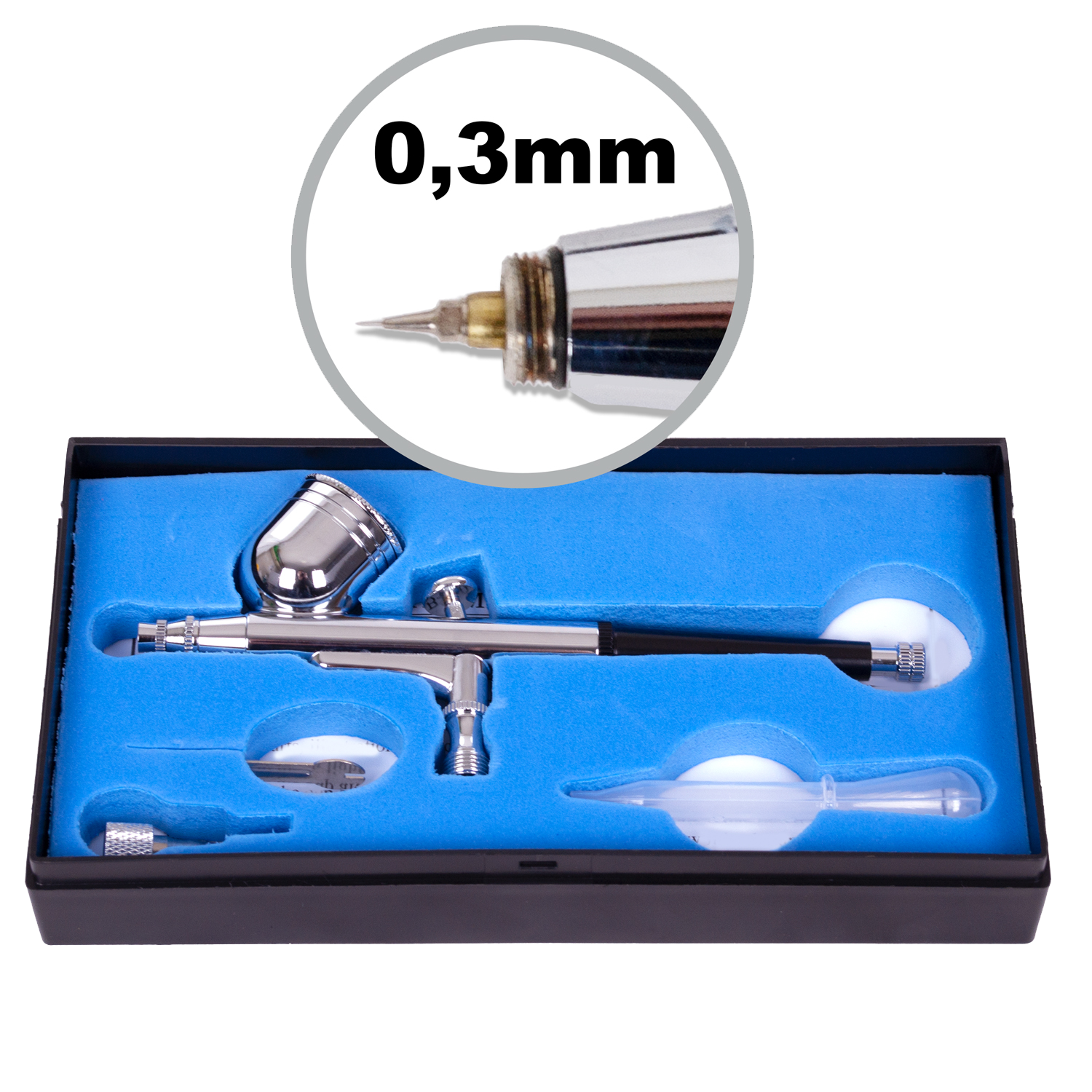 inklusive Profi-AirBrush Pistole “Gravity-Dual-Action” 130D und 1,8m Schlauch