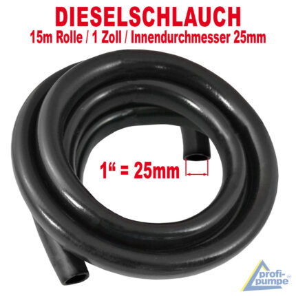 Diesel Gummi-Schlauch 1″, schwarz, 15m