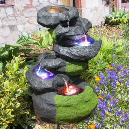 230V – Gartenbrunnen 3-Stufige STEIN-KASKADE mit LED-Licht