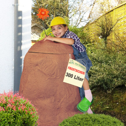 Regentonne Felsbrocken stein-braun – das ORIGINAL mit 300Liter! mit Auslaufhahn