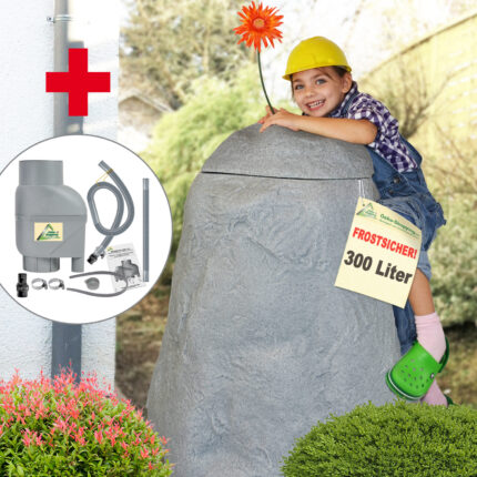 Regentonne FELSBROCKEN stein-grau zzgl. Befüll- und Entnahme-Set-Auswahl
