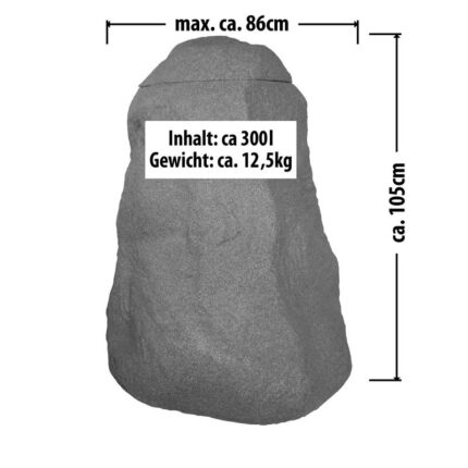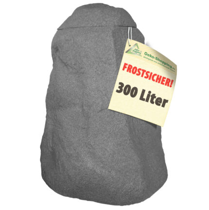 Regentonne Felsbrocken stein-grau – das ORIGINAL mit 300Liter! mit Auslaufhahn