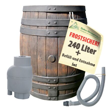 Regentonne Eichenfass 240L zzgl. Befüll- und Entnahme-Set-Auswahl