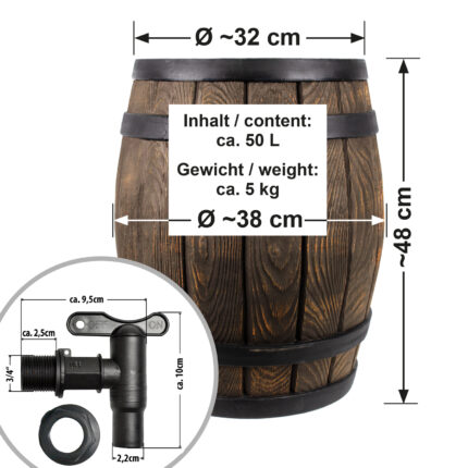 Regentonne Eichenfass 450L zzgl. Befüll – und Entnahmeset – Auswahl