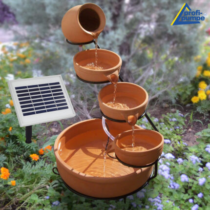 Solar – Brunnen Wasserspiel “GRANIT-SÄULE & SCHALEN-3” mit Li-Ion-Akku & LED-Licht (Neu)