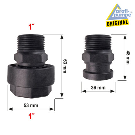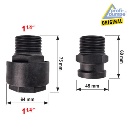 Kunststoff-Verschraubung QUICK RELEASE 1″ AG x 1 1/4″ IG