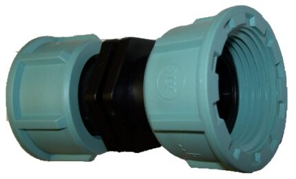 Winkelstück Kunststoff 90° 1″ Zoll IG*IG mit eingelegten O-Ring als Stirndichtung
