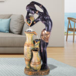 Gartenbrunnen im Stil afrikanischer Kunst mit LED-Licht