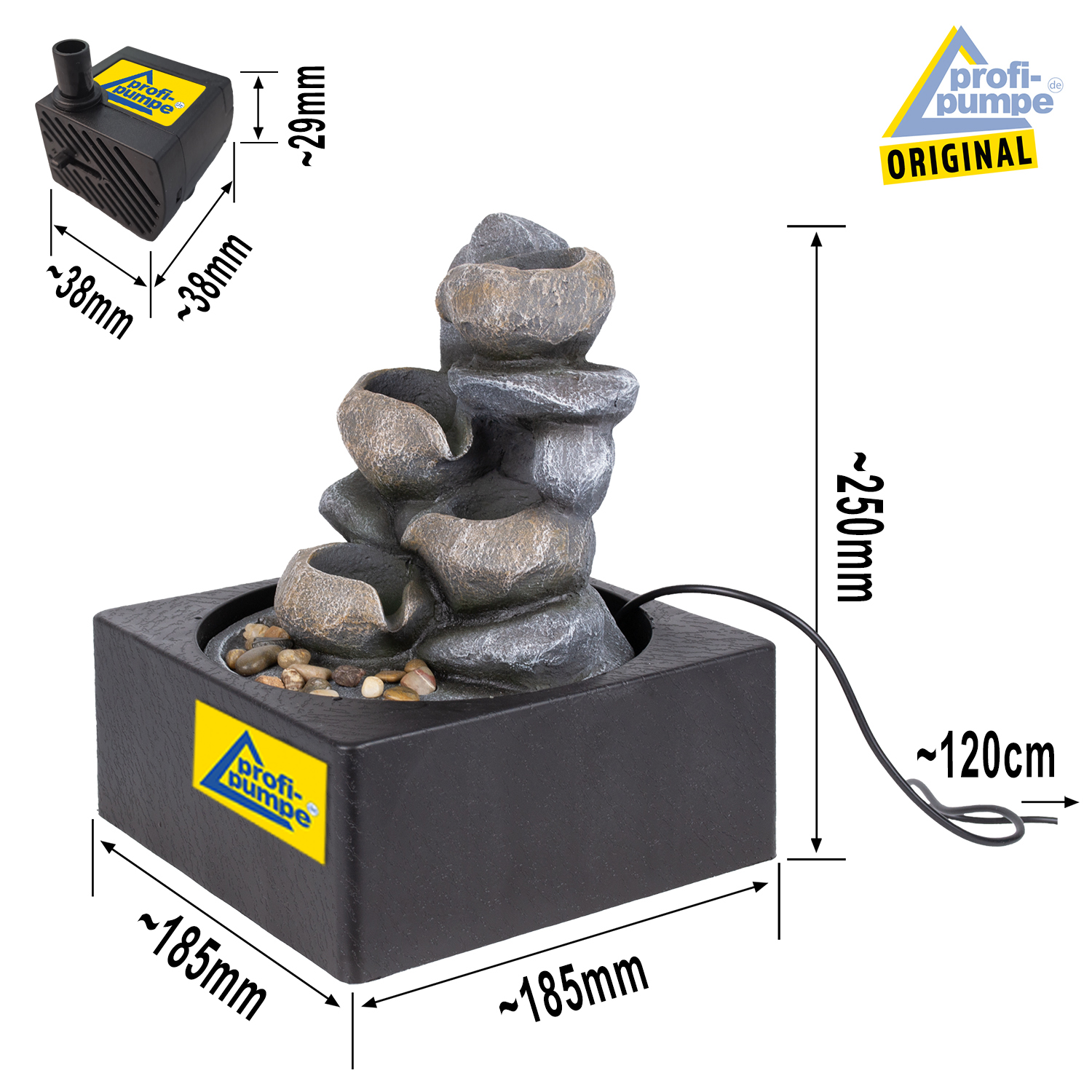 • Steckfertiger, sofort einsatzbereiter Zimmerbrunnen