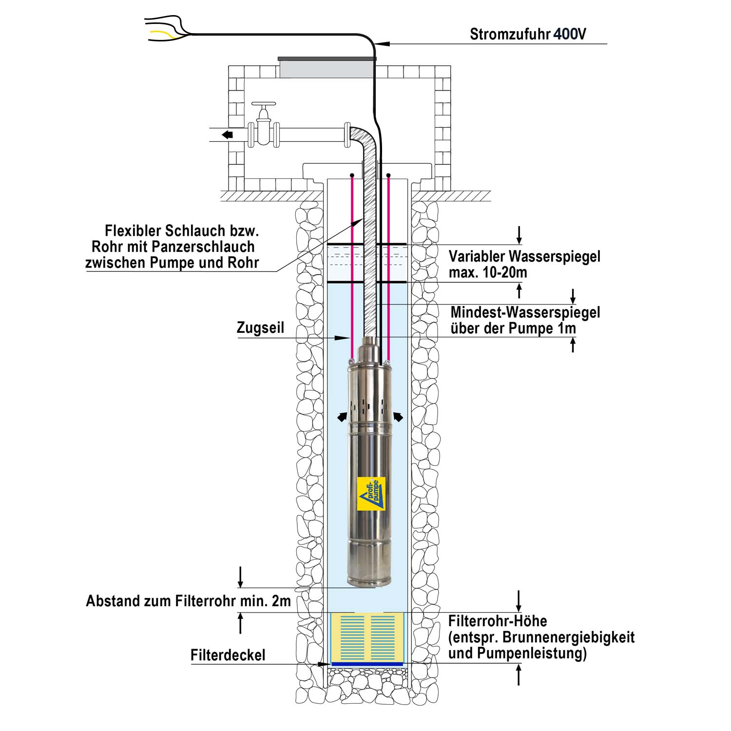 - Tiefbrunnenpumpe für 400V Drehstrom