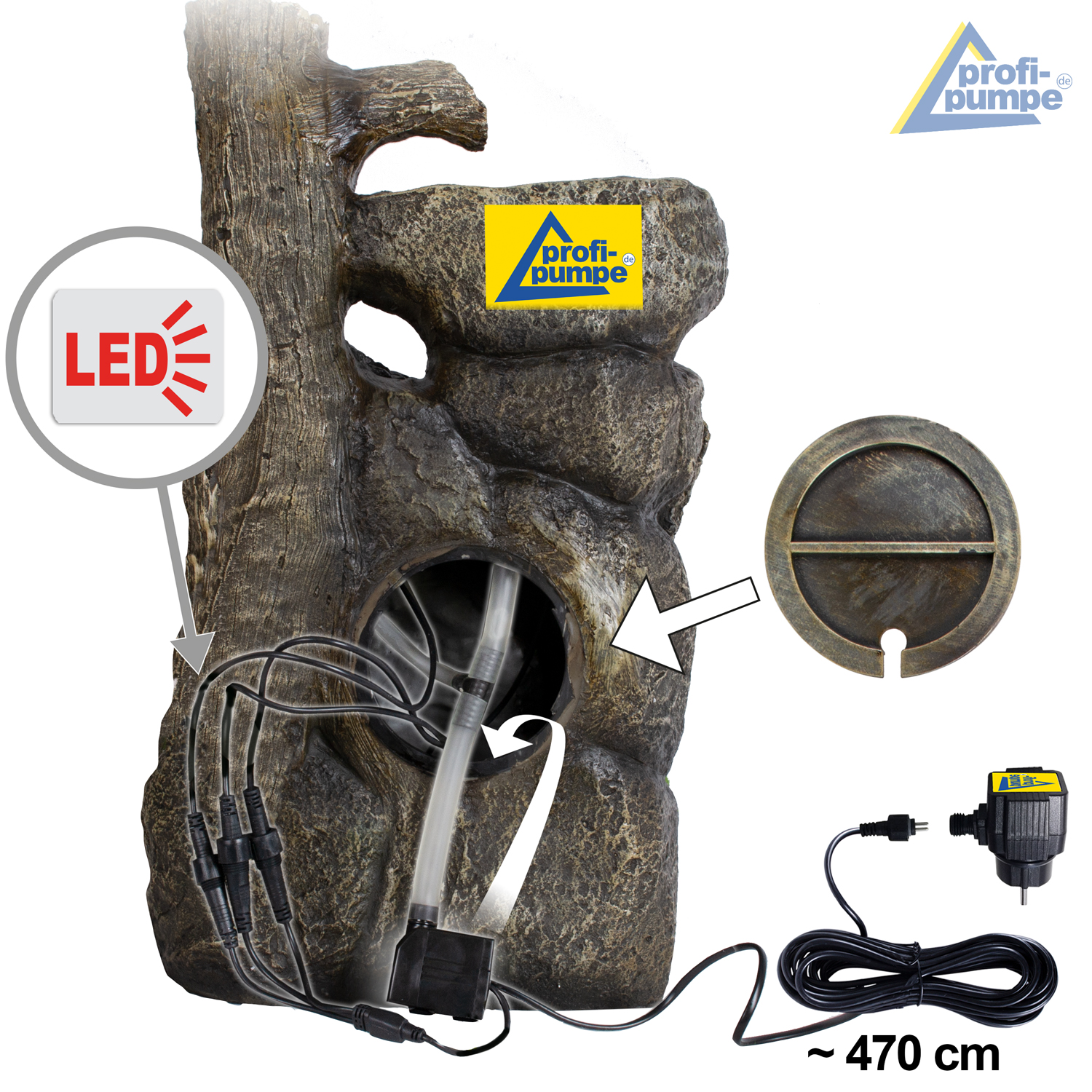 • Mit 230V/12V-Anschluss, 7 Watt Pumpe und LED-Ringe in warmem Weiß
