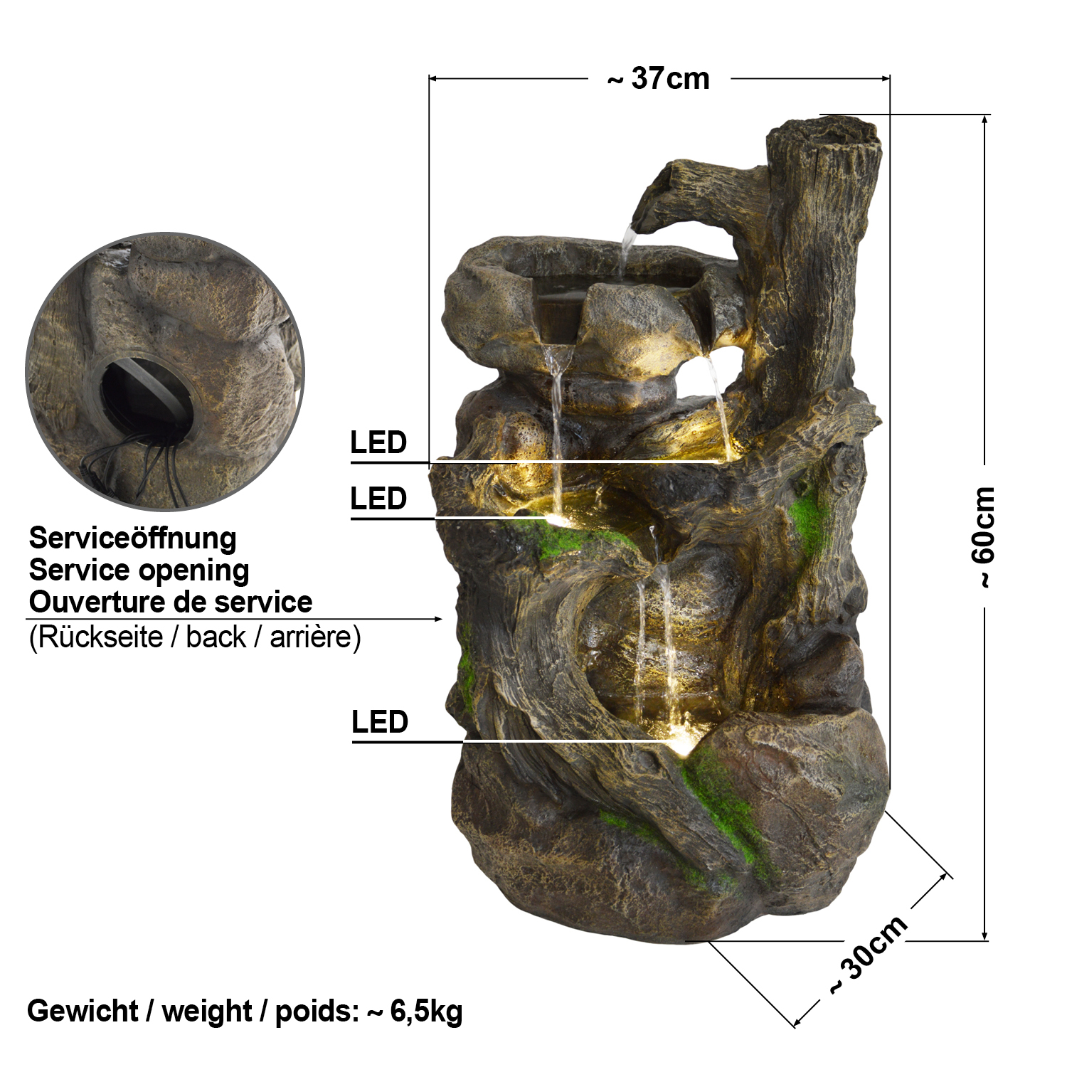 B-Ware Gartenbrunnen BAUMWURZEL & STEIN-KASKADE mit LED-Licht