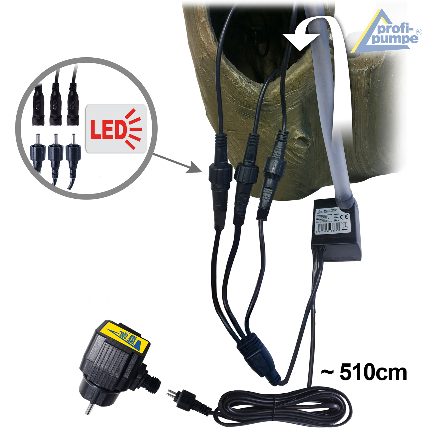 • LED-Gartenbrunnen für den Innen- und Außenbereich mit 230/12V-Netzadapter