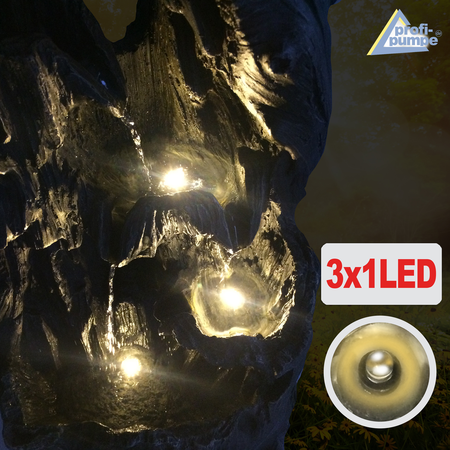 Gartenbrunnen WALD-ZAUBER mit LED-Ring (3×1 warm weiß) und 230/12V-Netzadapter. Für den Innen- und Außenbereich.