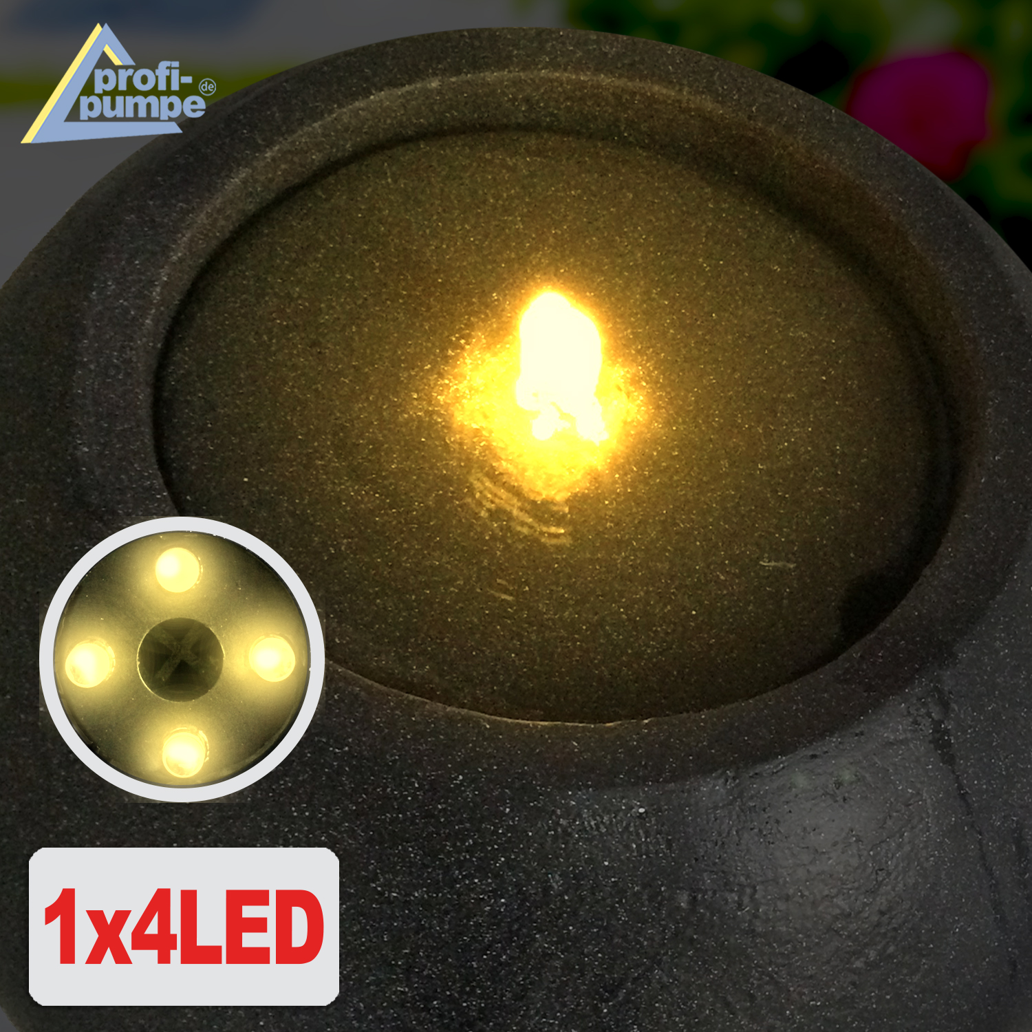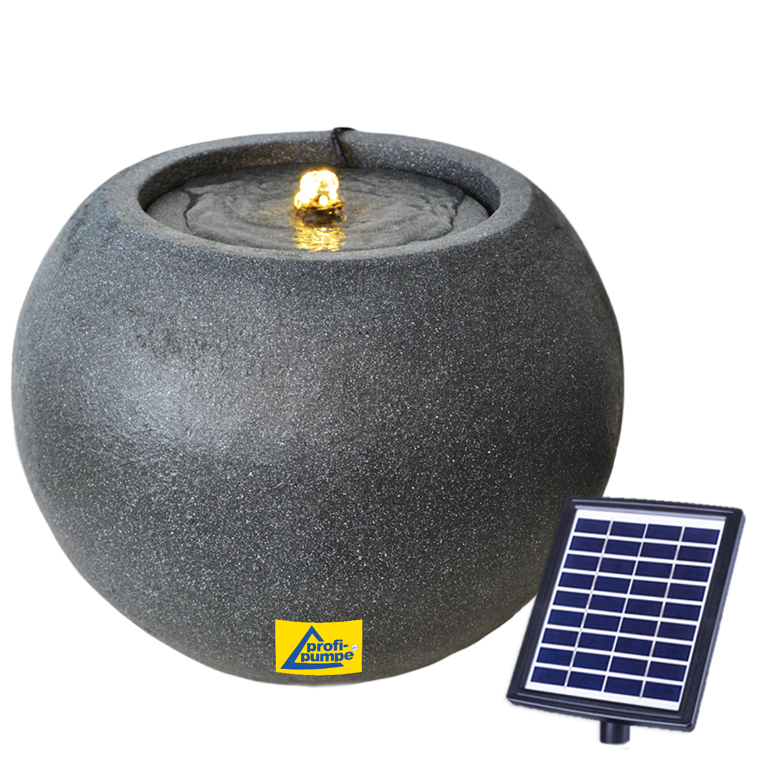 Solarbetriebener Garten-Brunnen mit Li-Ion Akku und LED-Licht