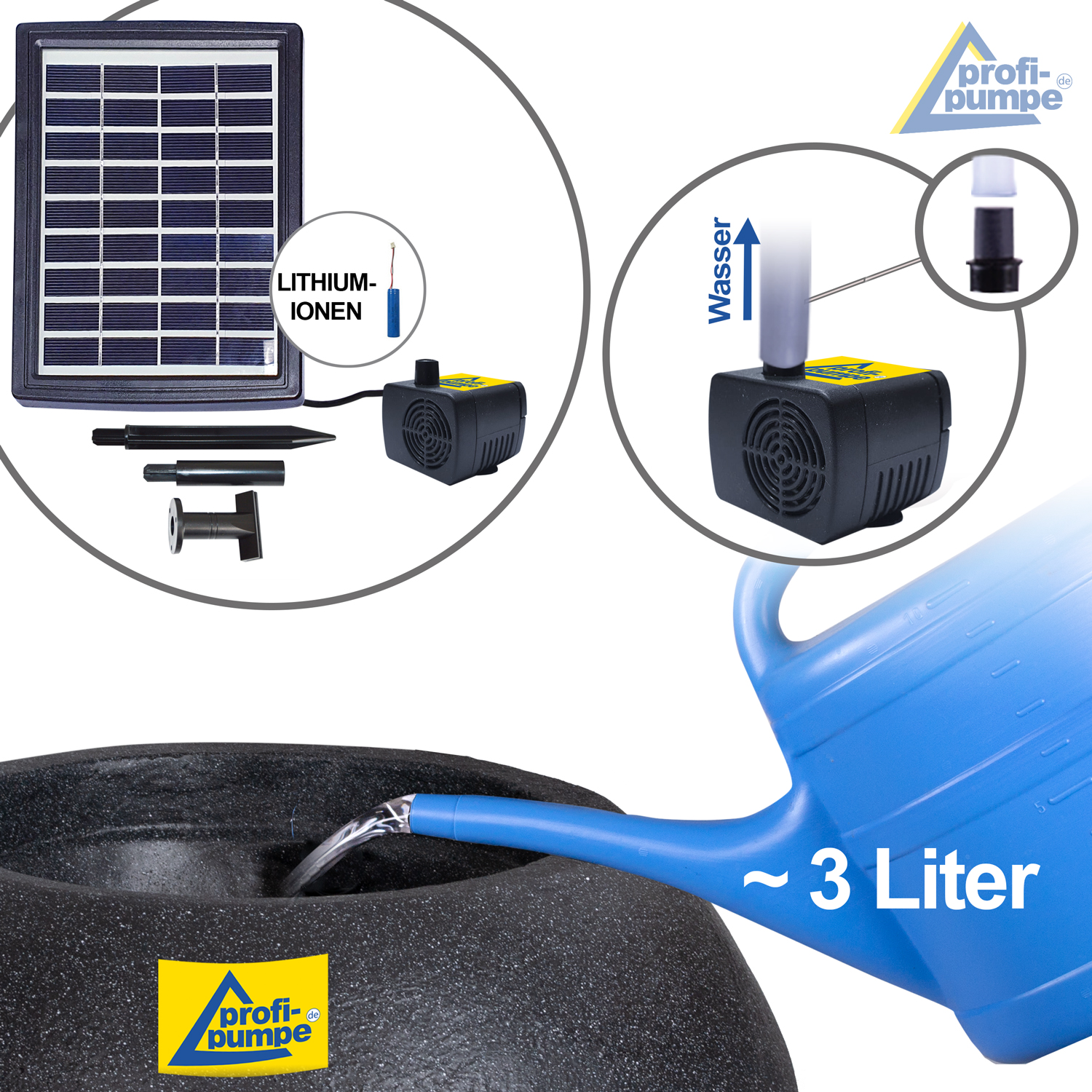 Die innovativen Li-Ion-Akkus haben keinen Memory-Effekt. Das ist besonders bei häufigen Auf- und Entladevorgängen wie bei Solarteichpumpen enorm wichtig, um langfristig die optimale Akku-Kapazität zu erreichen. Die Li-Ion-Akkus sind wesentlich besser bezüglich Temperaturschwankungen als herkömmliche Akkus. Es erwartet Sie ein länger andauerndes und lebendigeres Wasserspiel. Die Funktion des Solar-Brunnens startet bereits bei minimaler Aufladung – automatisch! Als Schutz vor Tiefentladung erfolgt eine automatische Abschaltung bei Erreichen des Mindest-Endladezustands. Kein Akku-Wechsel erforderlich! Insgesamt haben die Li-Ion-Akkus im Vergleich zu herkömmlichen Akkus eine 3 mal längere Laufzeit und eine bis zu 10-FACHE Lebensdauer beim Betrieb mit Solarteichpumpen!