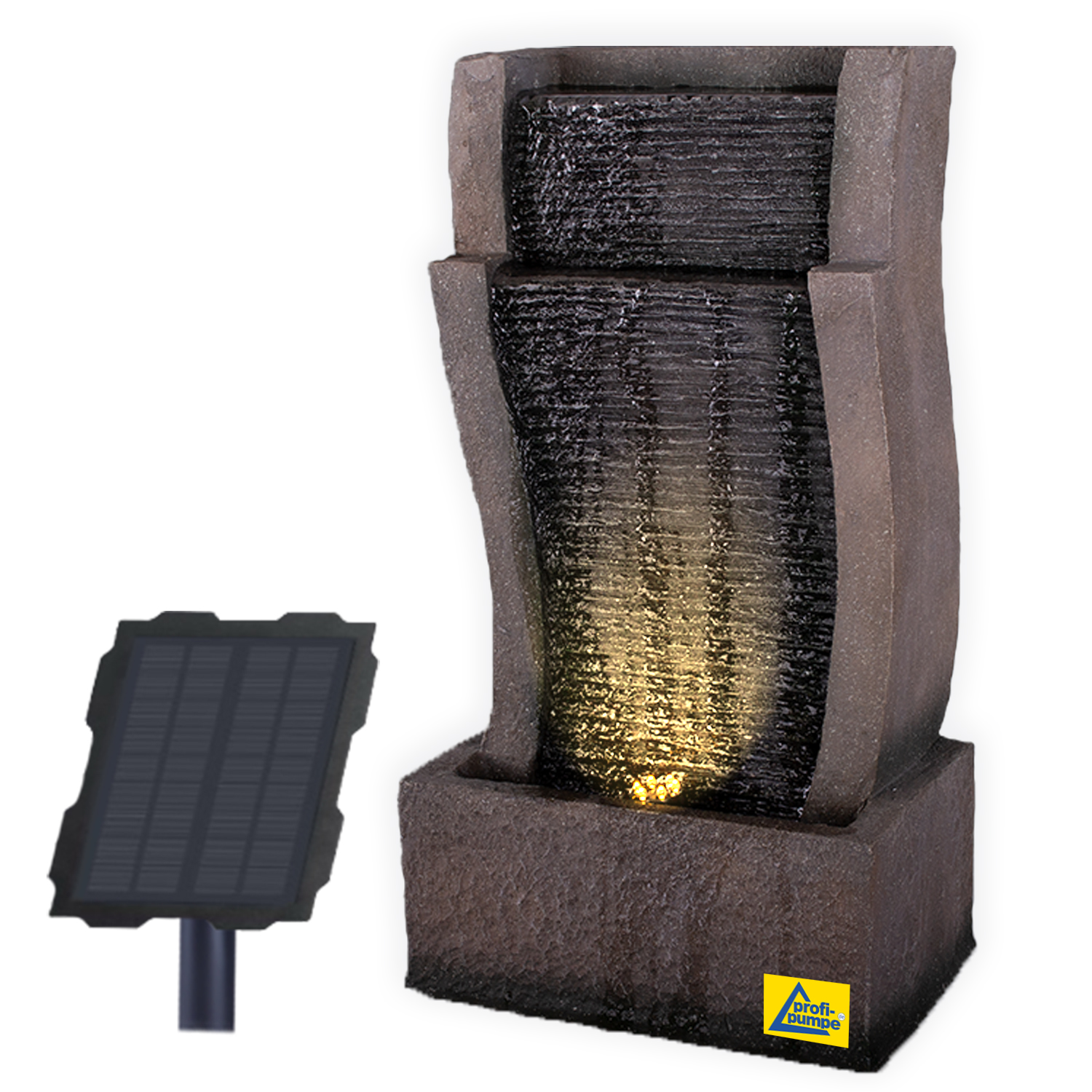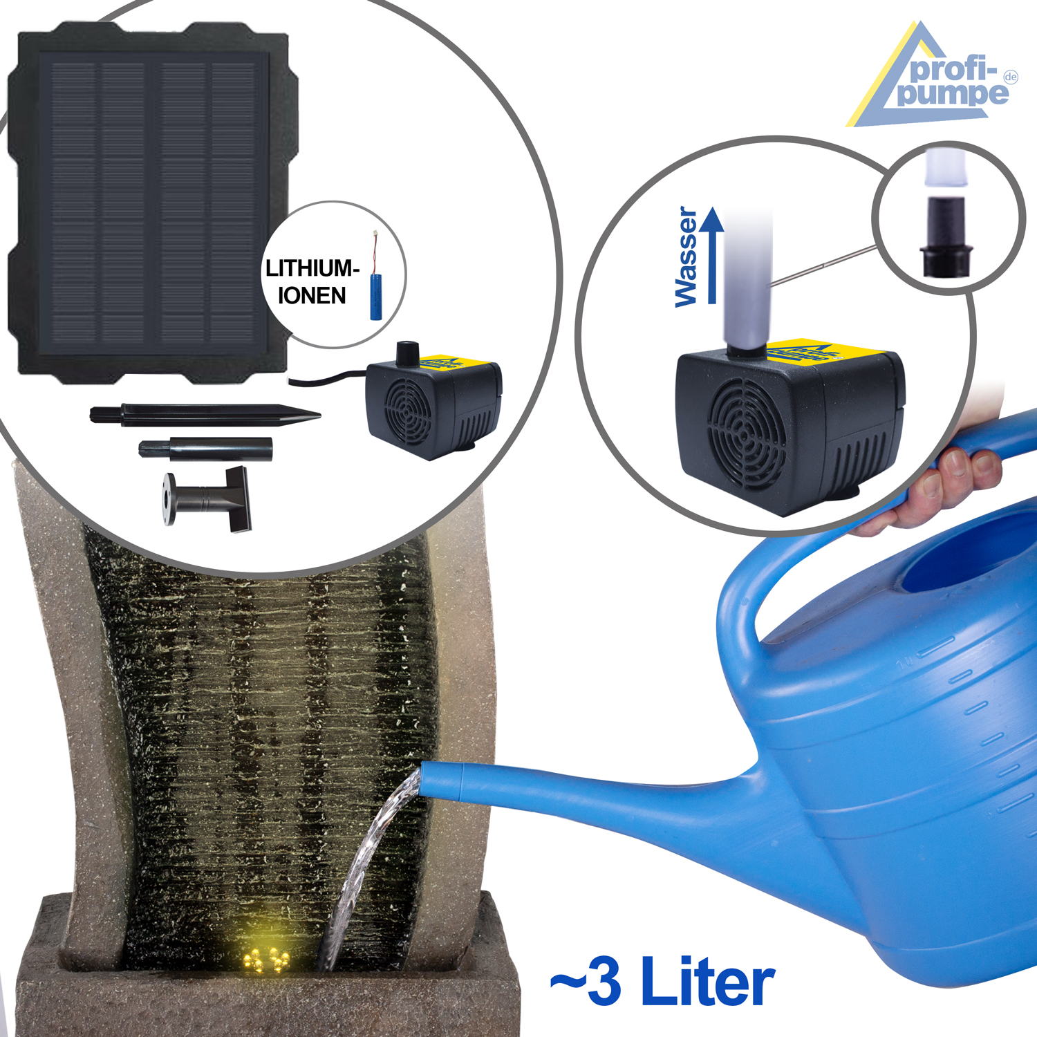 Solarbetriebener Garten-Brunnen mit Li-Ion Akku und LED-Licht