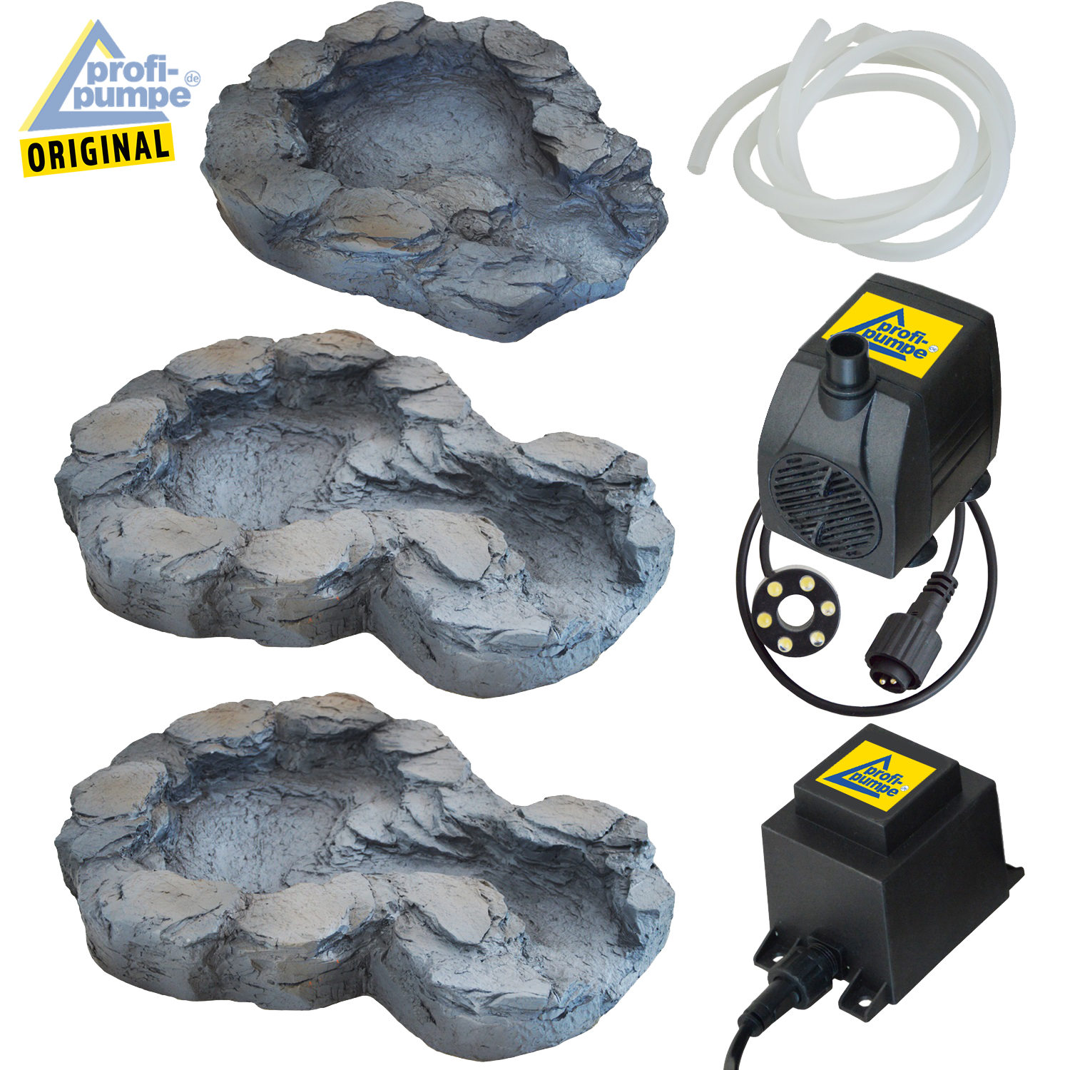 Bachlauf QUELLBACH II dunkel-grau, 3-teilig 230V-Pumpe und 1×6 weiß LED-Licht