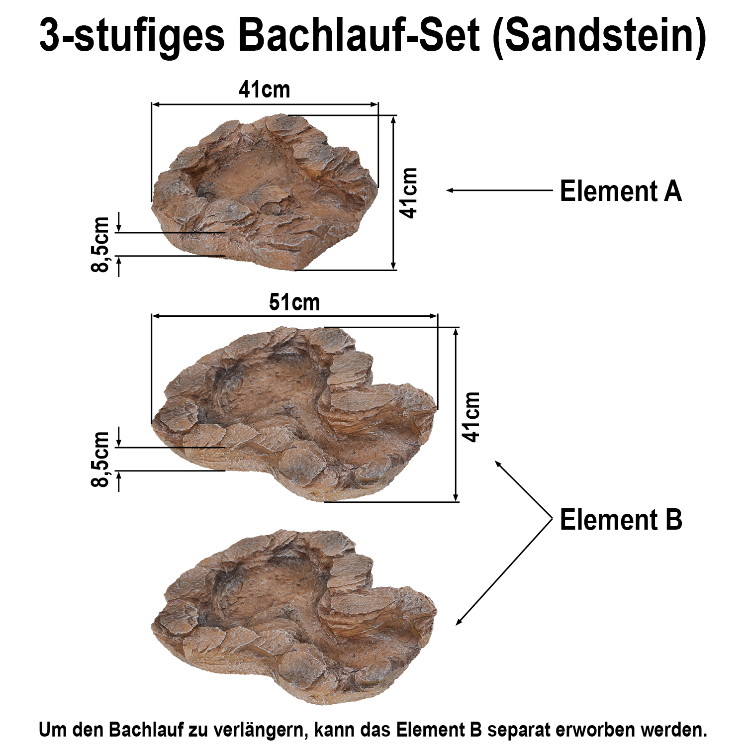 - 3-tlg. Kaskaden-Gartenbrunnen-Set zur effektvollen Bachlauf-Gestaltung