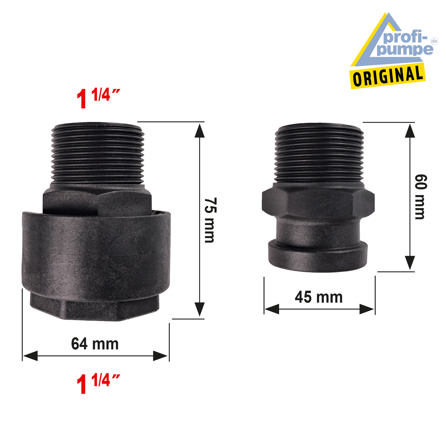 - Gerader Anschluss 1 1/4″ x 1 1/4″