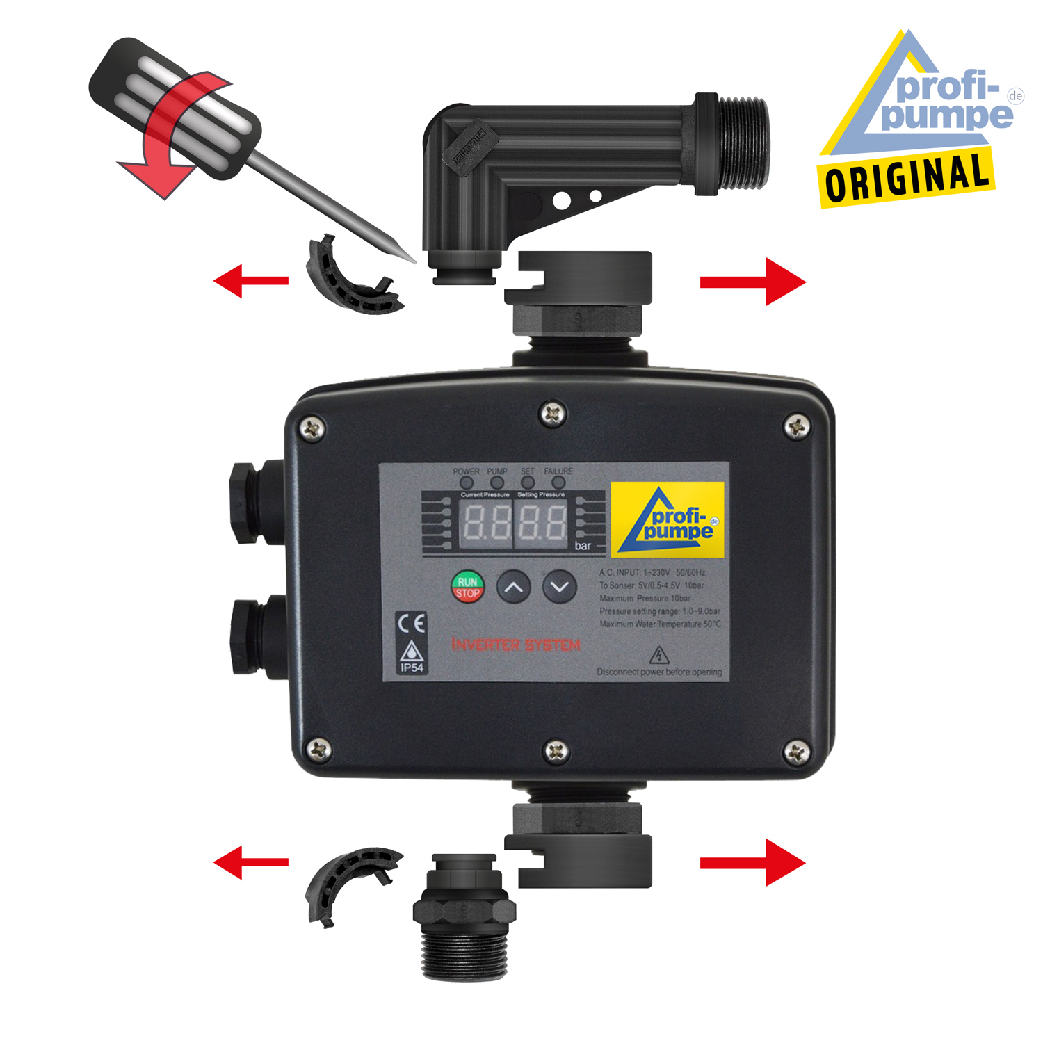- Kunststoffanschlüsse (polypropylen) mit garantierter Dichtheit bis zu 10 bar